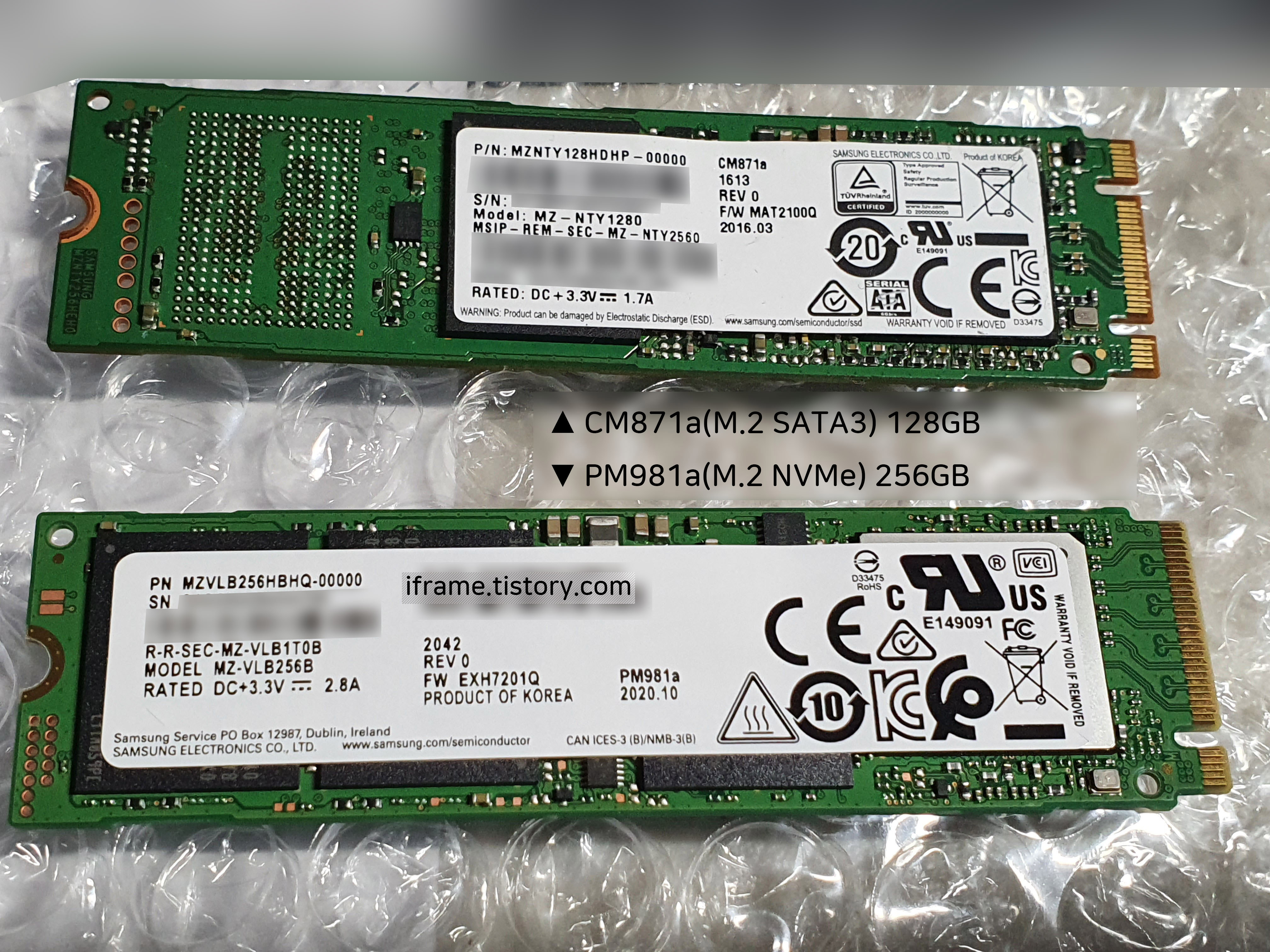 메인보드가 NVMe를 지원하기에 저렴한 PM981a를 사용했습니다. 해당 SSD는 삼성전자가 OEM 빌더(PC/노트북 제조사 등)에 판매하는 제품으로 저렴하지만 삼성전자가 아닌 판매(구매) 처에서 직접 AS를 받아야 되는 게 특징입니다.