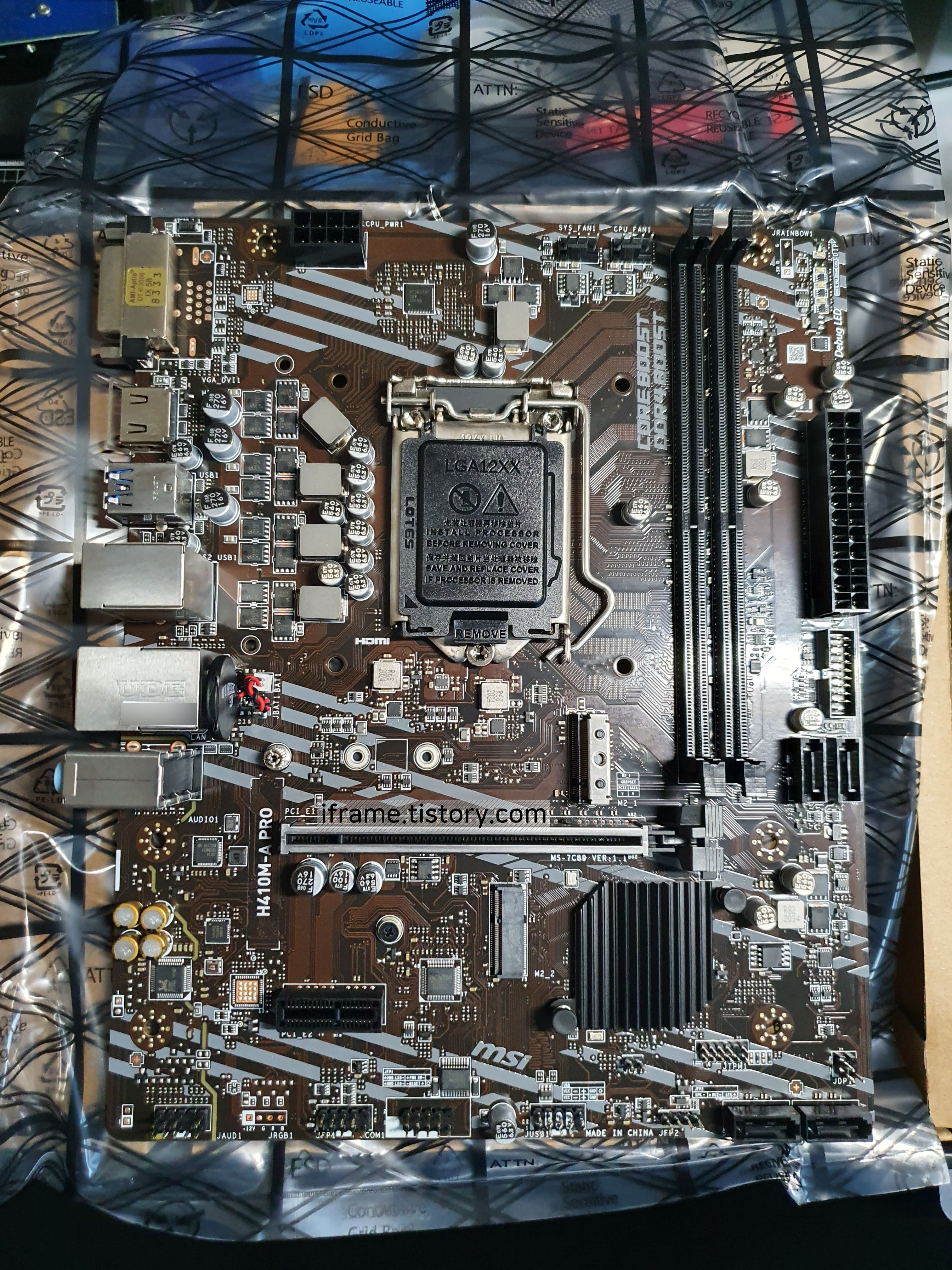 보드는 msi의 H410M-A PRO로 선택하였습니다. NVMe를 지원하는 M.2 슬롯이 있어 980 PRO 같은 SSD를 사용할 수 있는게 특징입니다.