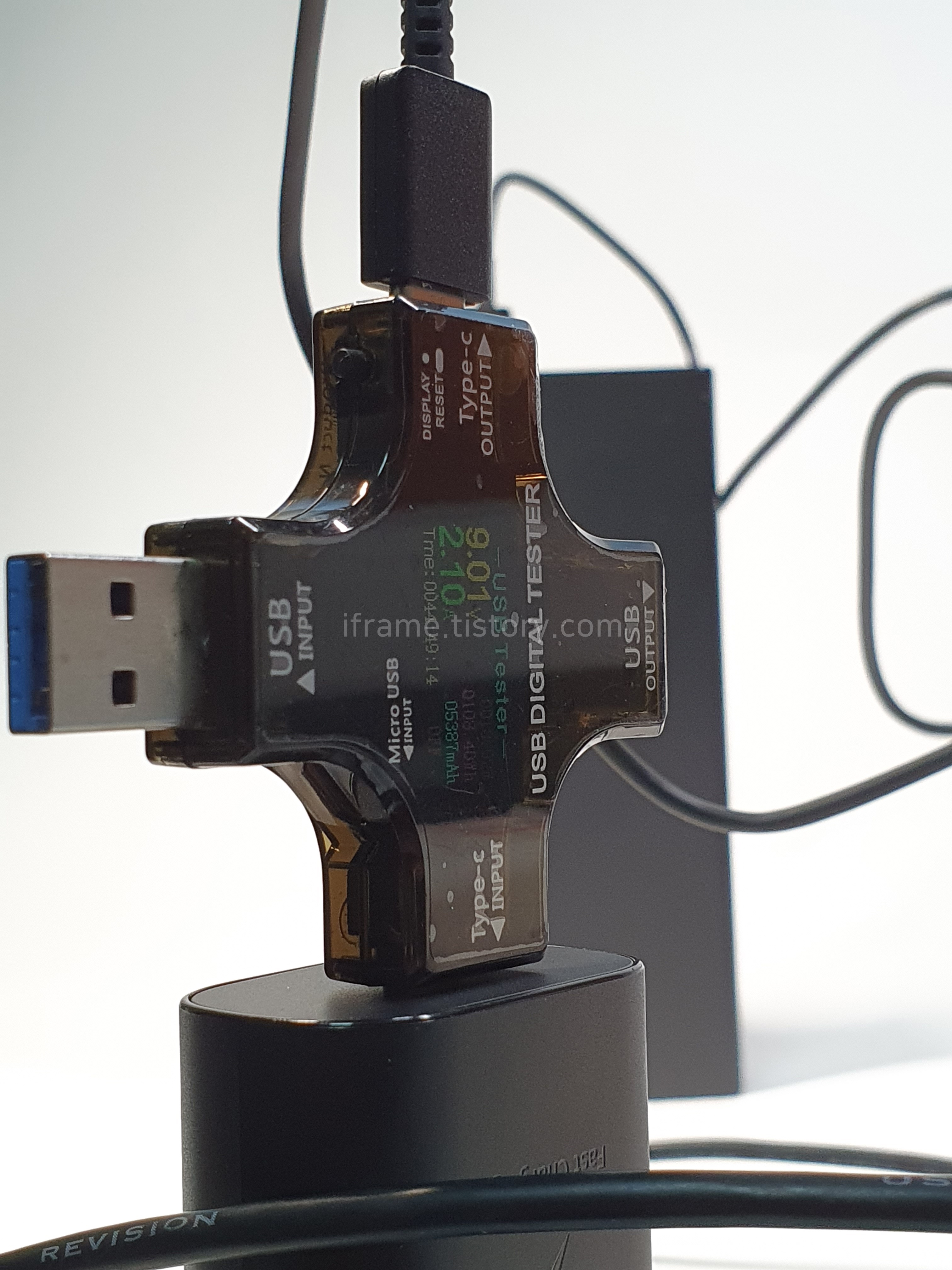 출력은 기기마다 차이가 있어 측정하지 않았으며 충전만 측정해봤습니다. 해당 충전기가 9V 2.77A(25W)를 지원하는데 배터리는 9V 2A(18W)로 충전하여 빠르게 완충할 수 있습니다. 사진처럼 9V 2.1A 정도면 통상 9V 1.67A 정도 지원되는 타 배터리에 비해 조금 더 빠르게 충전이 가능합니다.