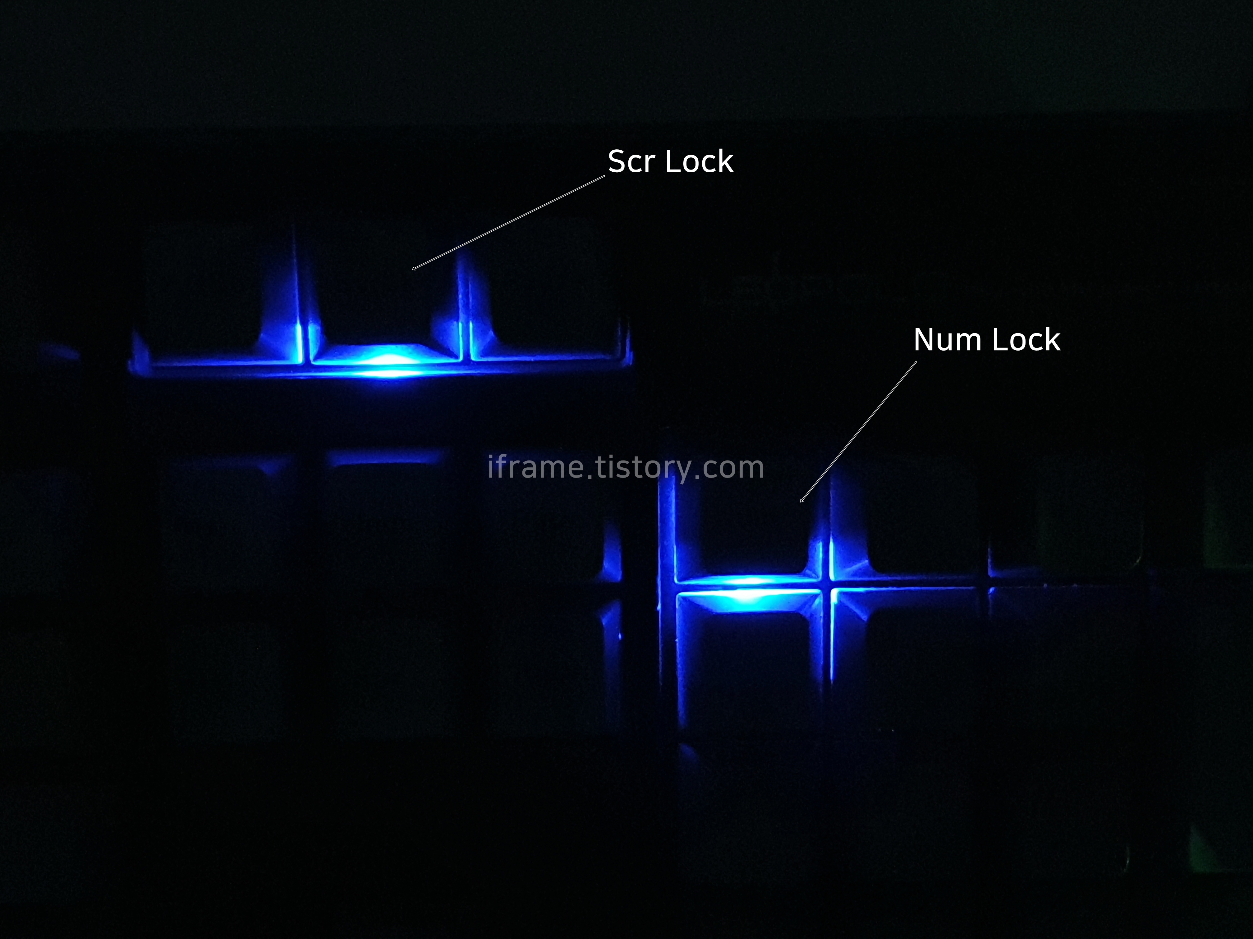 그 대신 해당되는 키에 LED를 설치하여 켜져 있는지 쉽게 구분이 가능합니다. 사진에는 없지만 Caps Lock 에도 LED가 발광하여 구분하기 좋습니다.