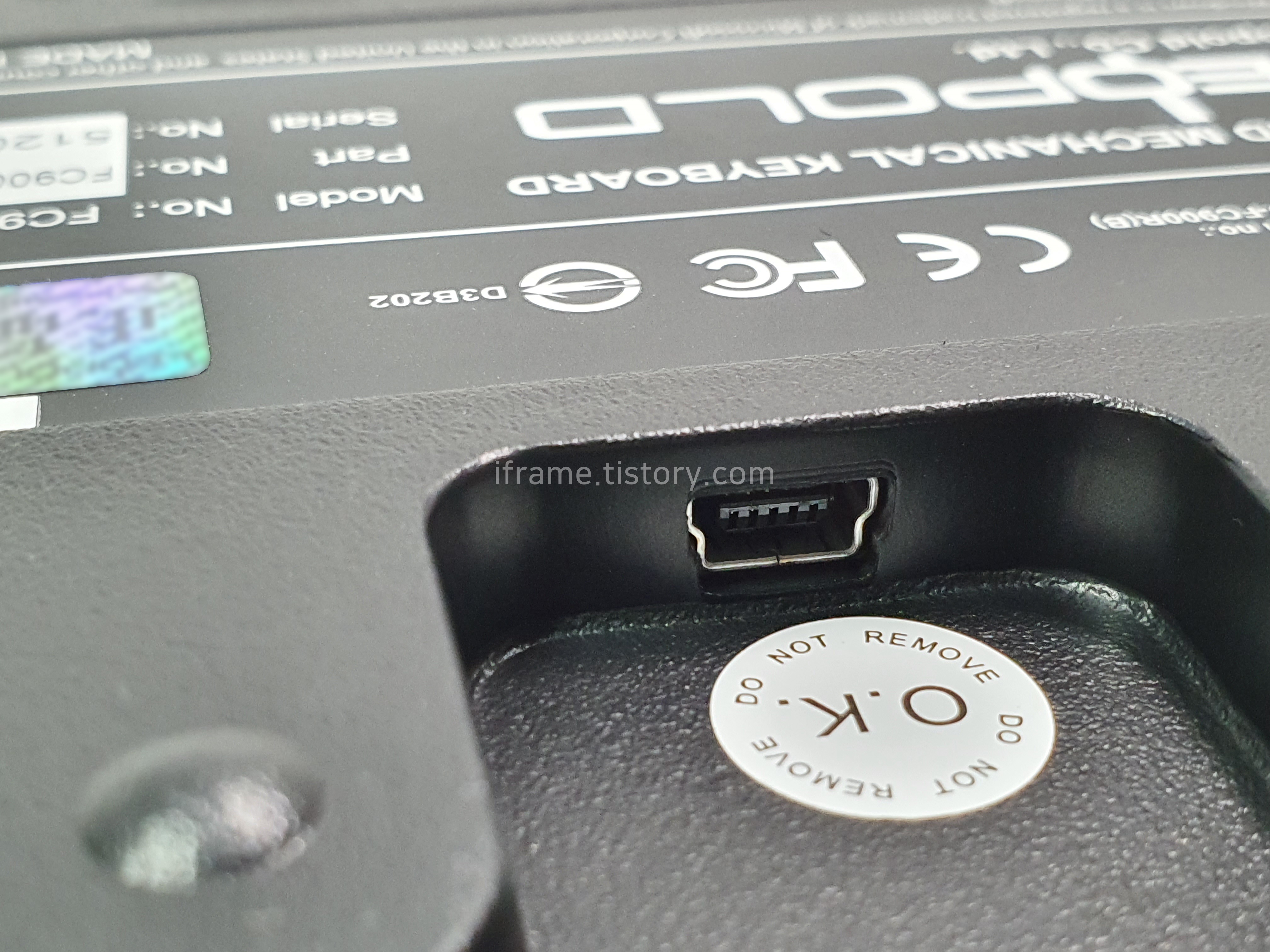 USB 미니 규격을 사용하는 케이블을 키보드에 연결하여 사용합니다. 2020년에 출시된 제품이면 Type-C도 도입될 법도 하나 아직은 아닙니다. 이 점은 아쉽습니다만 몇 년 쓰다 새로 바꿀 때쯤에는 다른 케이블이 들어갔으면 좋겠네요.