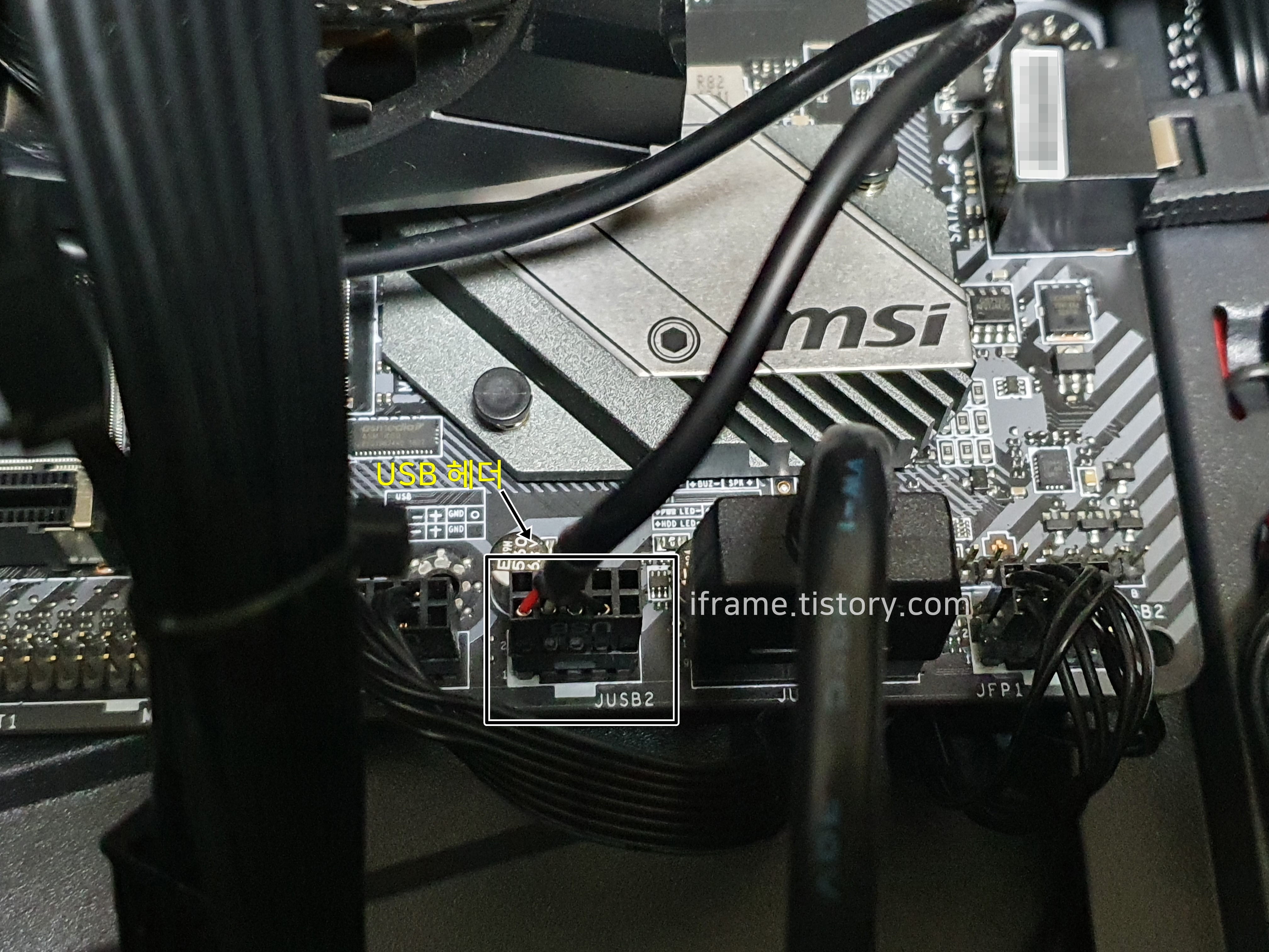 케이블을 연결해야 블루투스를 사용할 수 있으므로 한쪽엔 PCIe 어댑터를, 다른 한쪽은 본체의 USB 헤더에 연결합니다. 만약 헤더가 하나밖에 없어 연결이 어려운 경우 헤더를 확장하거나 연결 없이 사용하면 됩니다. 대신 앞서 언급한 대로 Blutetooth는 사용할 수 없습니다.