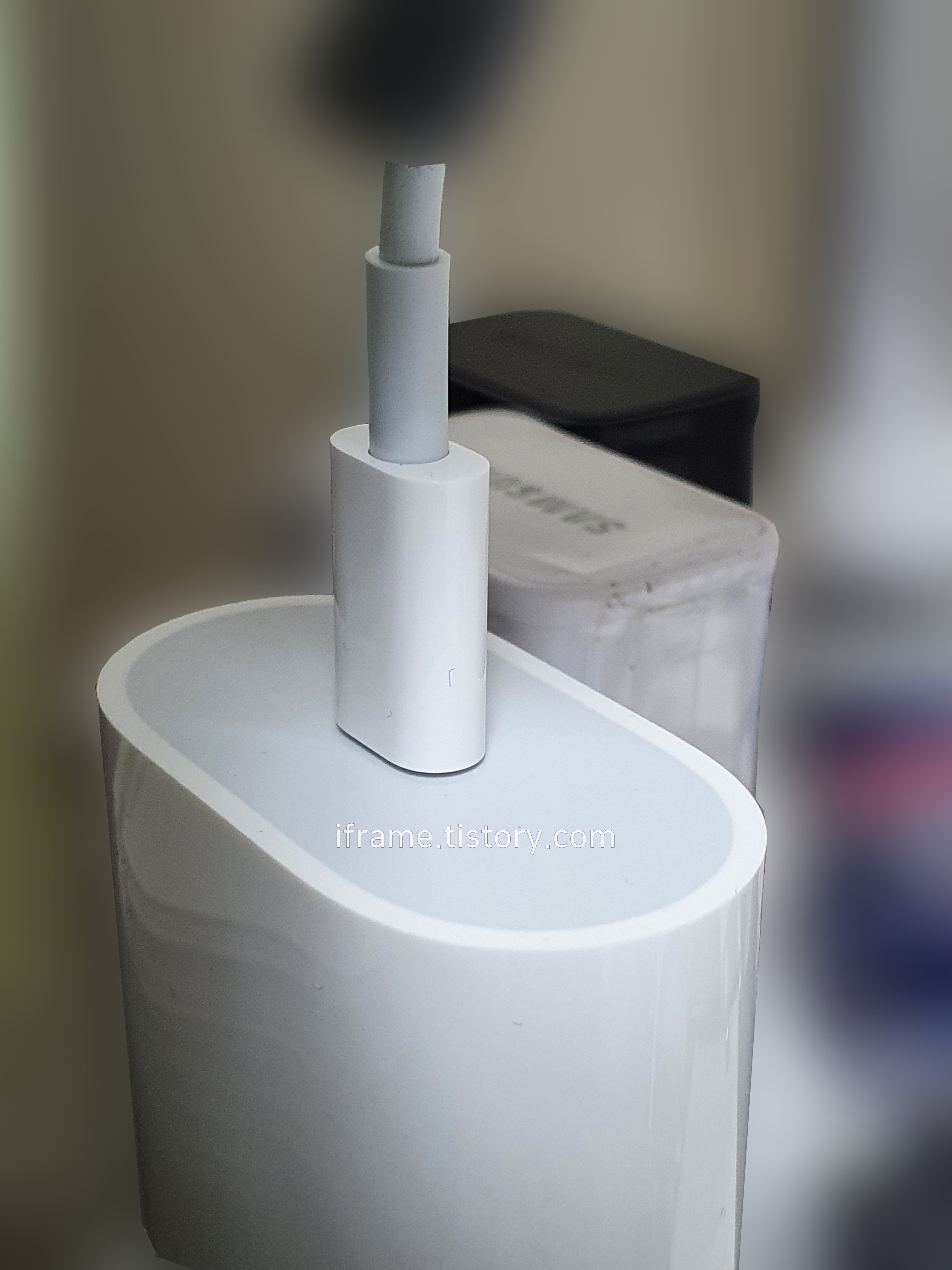 솔직히 충전기는 디자인도, 기능도 거의 비슷하여 특별한 점은 없습니다. 기존의 5W 충전기와는 4배 가까이 높은 출력, USB Type-A가 아닌 Type-C를 사용한 게 주요 특징이며 고속 충전을 위해 출력 높은 어댑터와 케이블을 따로 구하고... 그러실 필요가 없습니다. 케이블은 제품 박스에 있는 것을, 어댑터는 25,000원만 지불하시면 끝나기 때문이죠.