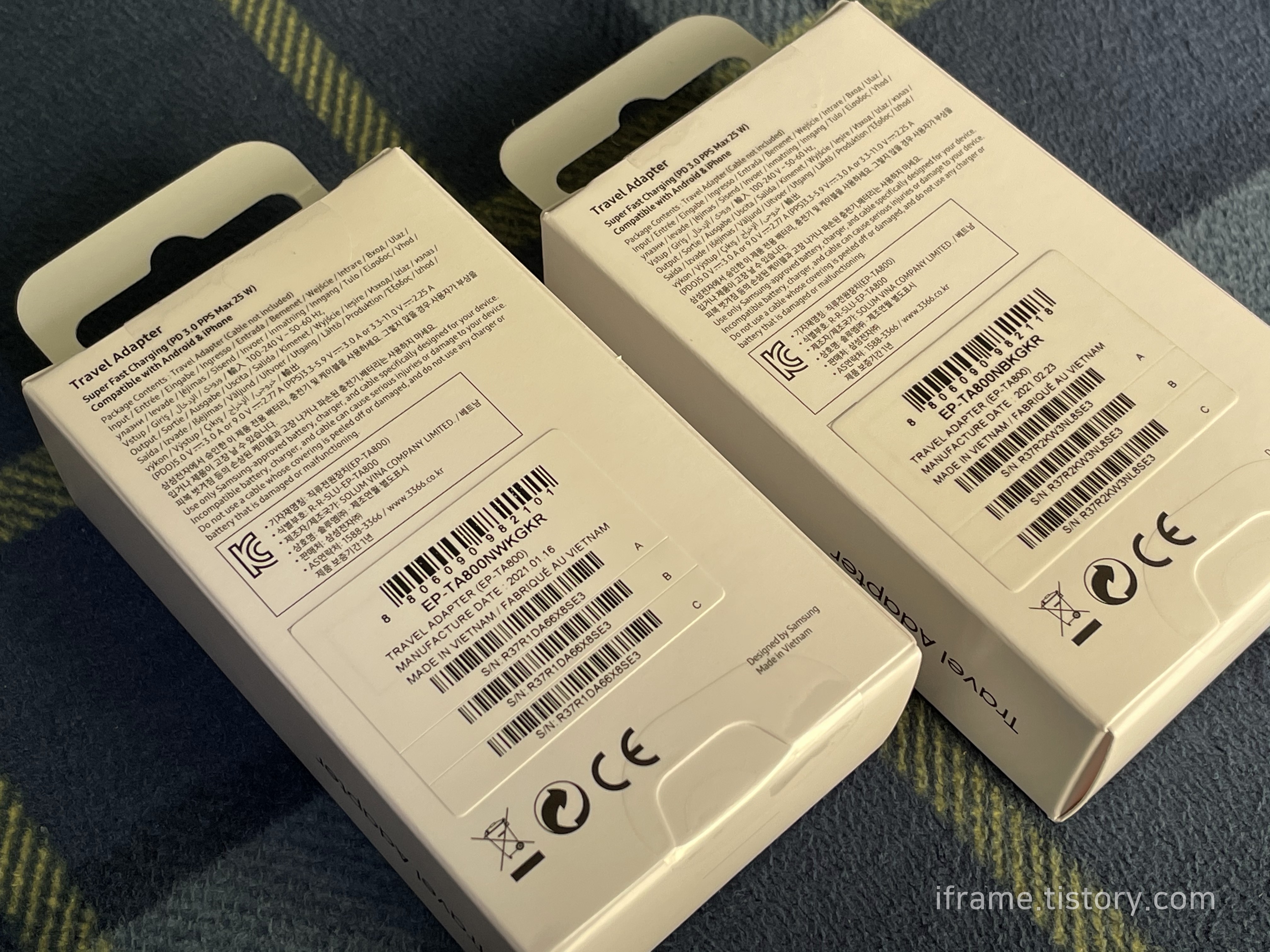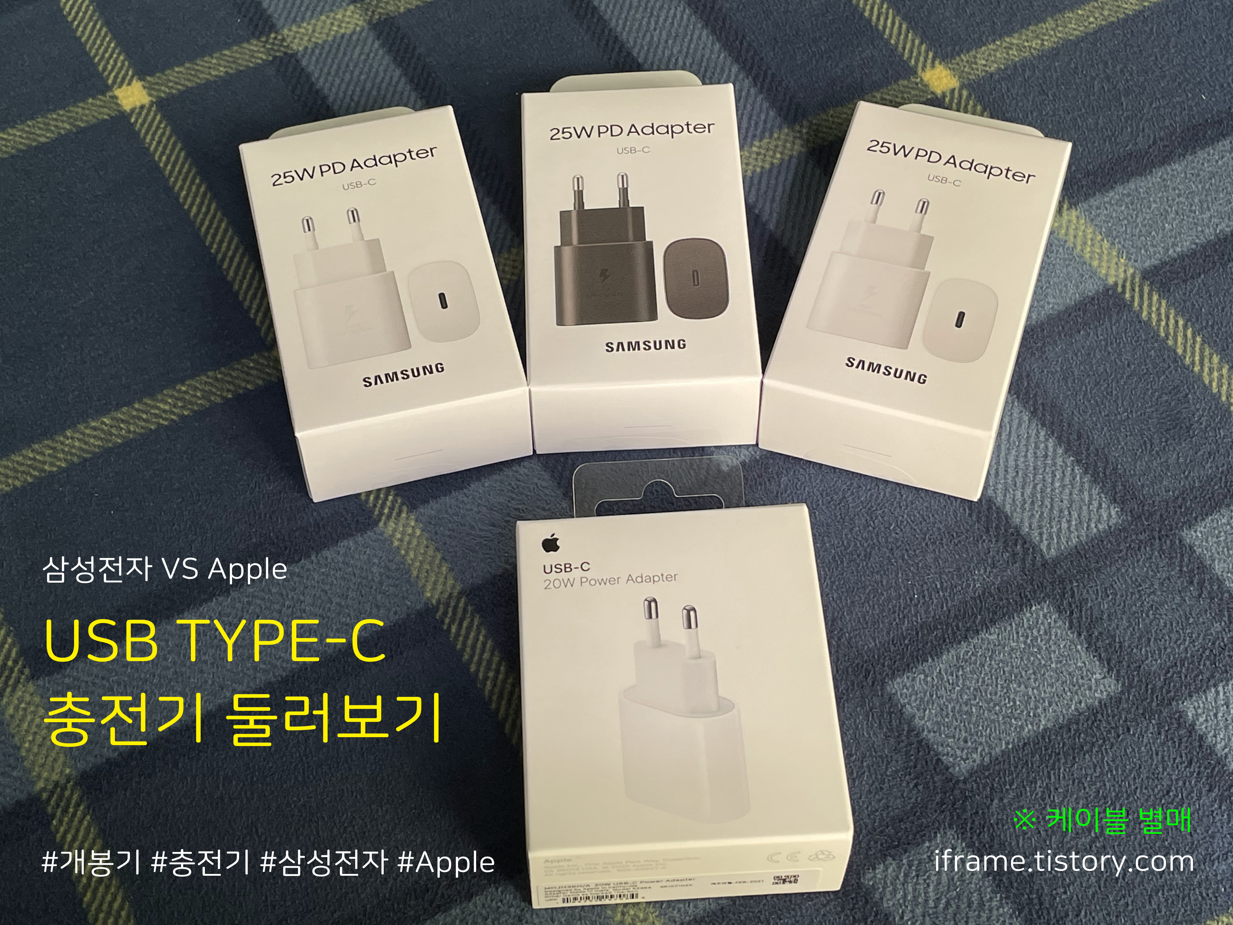 서론이 너무 길어졌는데, 충전기를 새로 구매해봤습니다. 삼성의 충전기는 라이브 방송으로 유명한 V사에서, Apple의 충전기는 로켓이 없는 지역이라 택배로 보내주는 C사에서 구매했습니다. 생각보다 가품 충전기가 시중에 많이 유통되고 있으니 구매하실 때 주의하셔야 돼요.