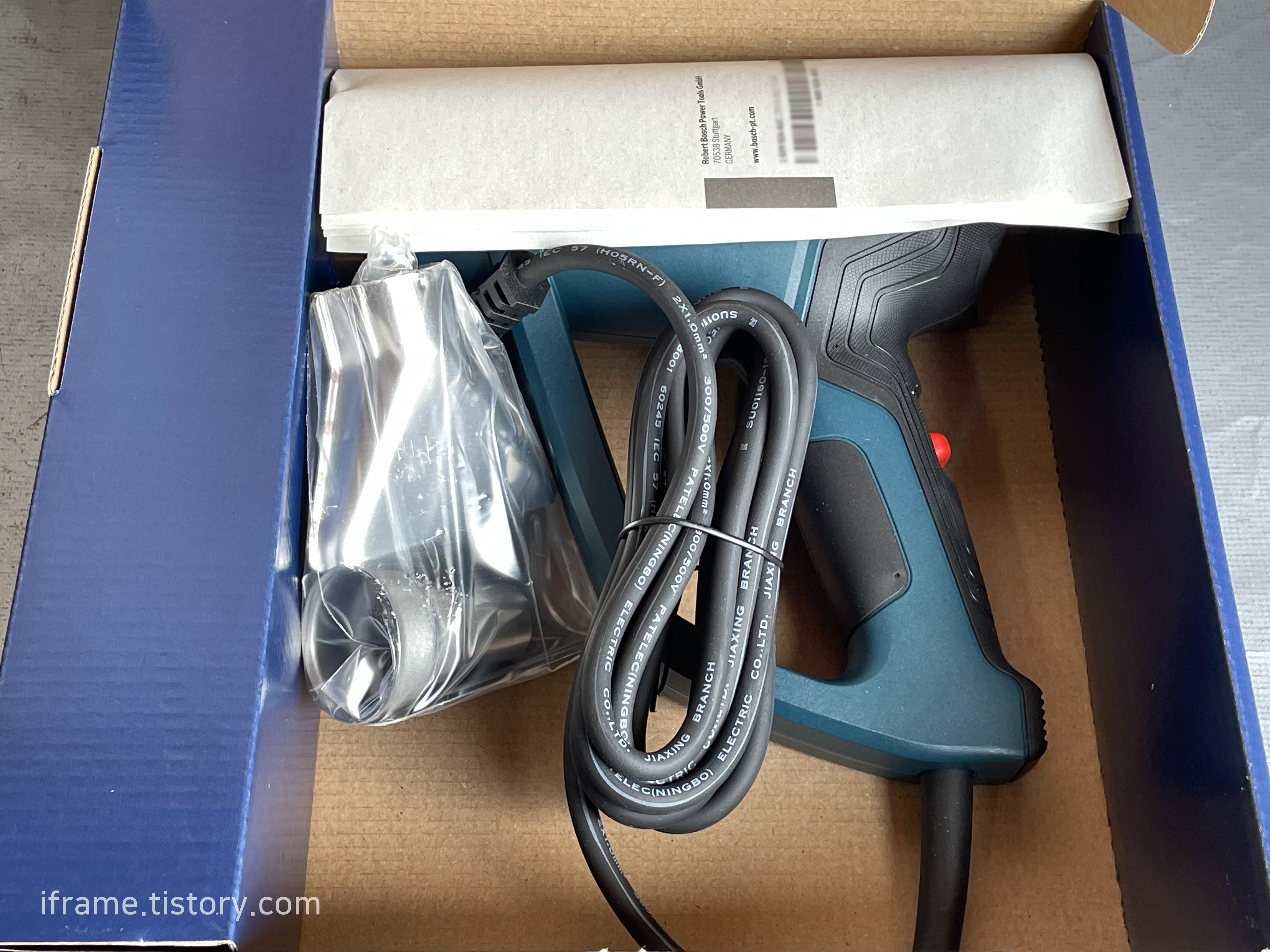 이번에 구매한 제품은 보쉬의 유선 히팅건 제품인 GHG 16-50으로 다*와 최저가를 검색해봤을 때 저렴하면서 브랜드 인지도가 있는 편이라 선택했습니다. 원래는 GHG 500-2를 주문했지만 그게 단종되어서 새로운 제품을 발송해줬다고 하는데 그게 위 사진 속 제품입니다. 박스 개봉은 3월 중순에 했는데 어쩌다 보니 5월까지 밀려왔습니다.
