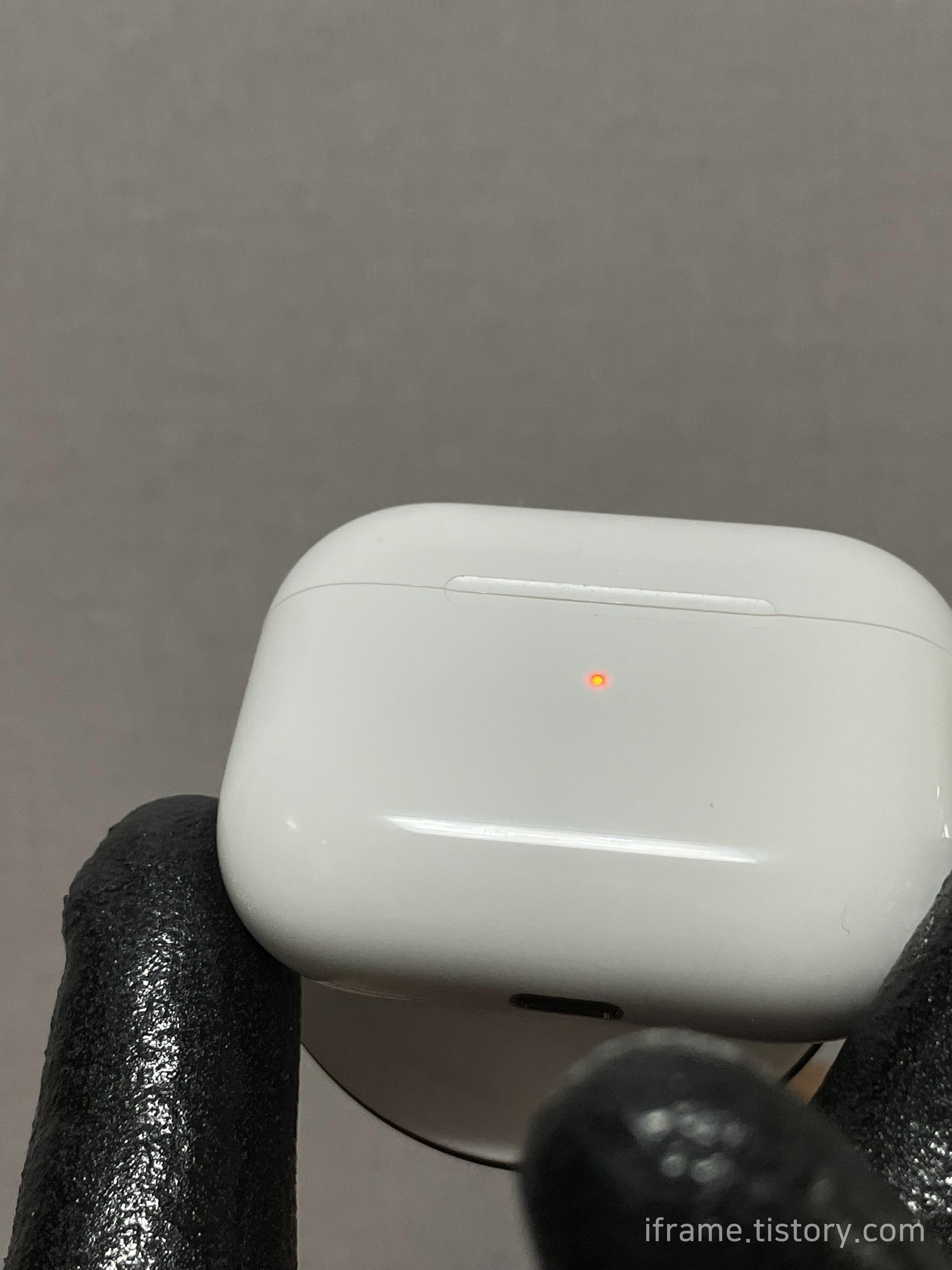 Airpods Pro를 하단 충전부에 올려두고 케이스를 열어봤습니다. 휴대폰에선 충전 중으로 뜨는 모습과 함께 배터리의 잔량 또한 확인이 가능합니다. 더 이상 라이트닝 케이블을 찾아서 꽂지 않아도 편하게 무선 충전을 하는 건 정말 편리하단 생각이 많이도 듭니다~