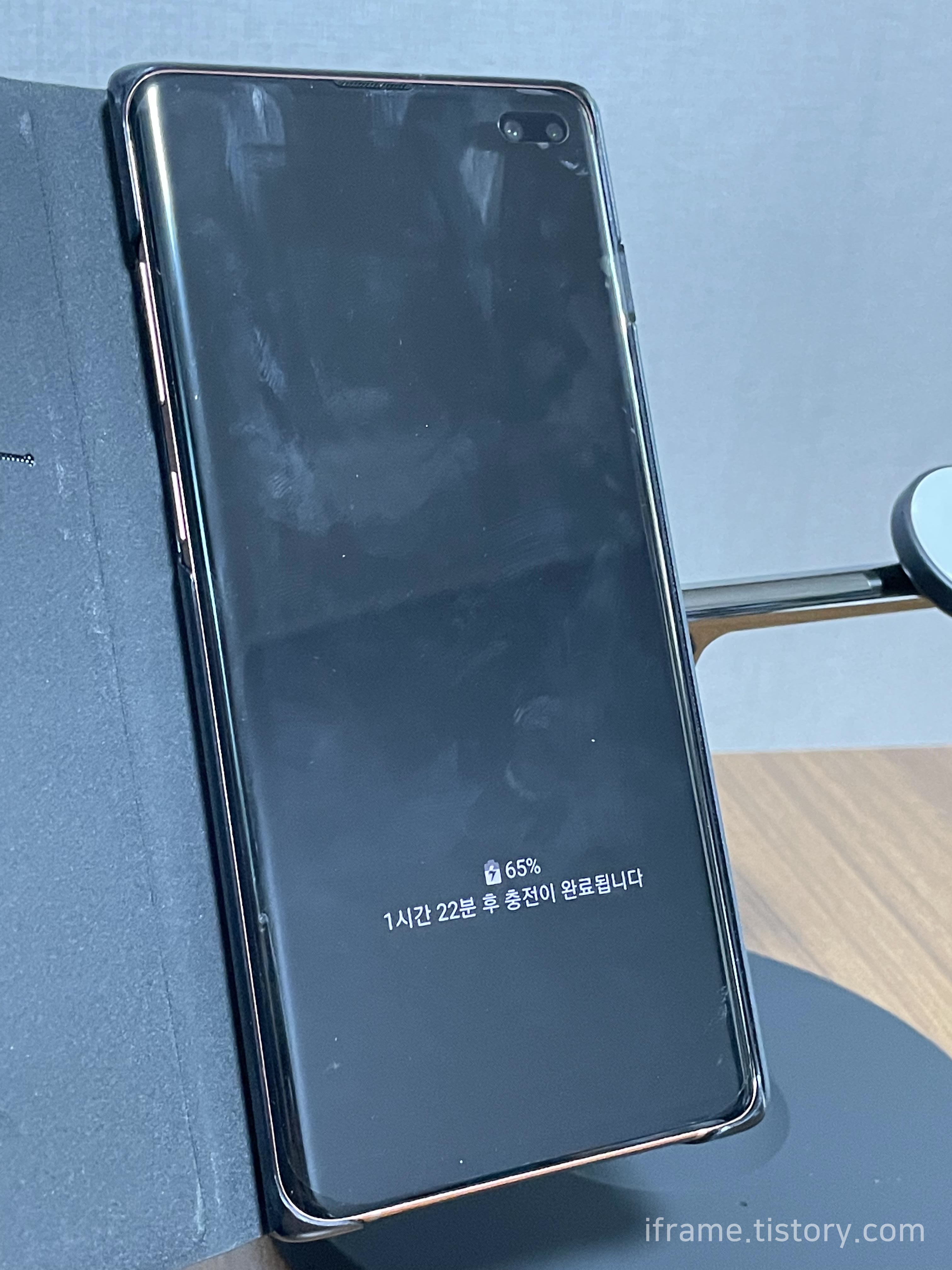 필자가 사용했었던 갤럭시 S10+을 MagSafe 충전기에 대어보니 충전이 잘 되고 있습니다. 고속 무선 충전이 지원되는 단말이지만 그와 상관없이 저속으로 무선충전이 진행됩니다.