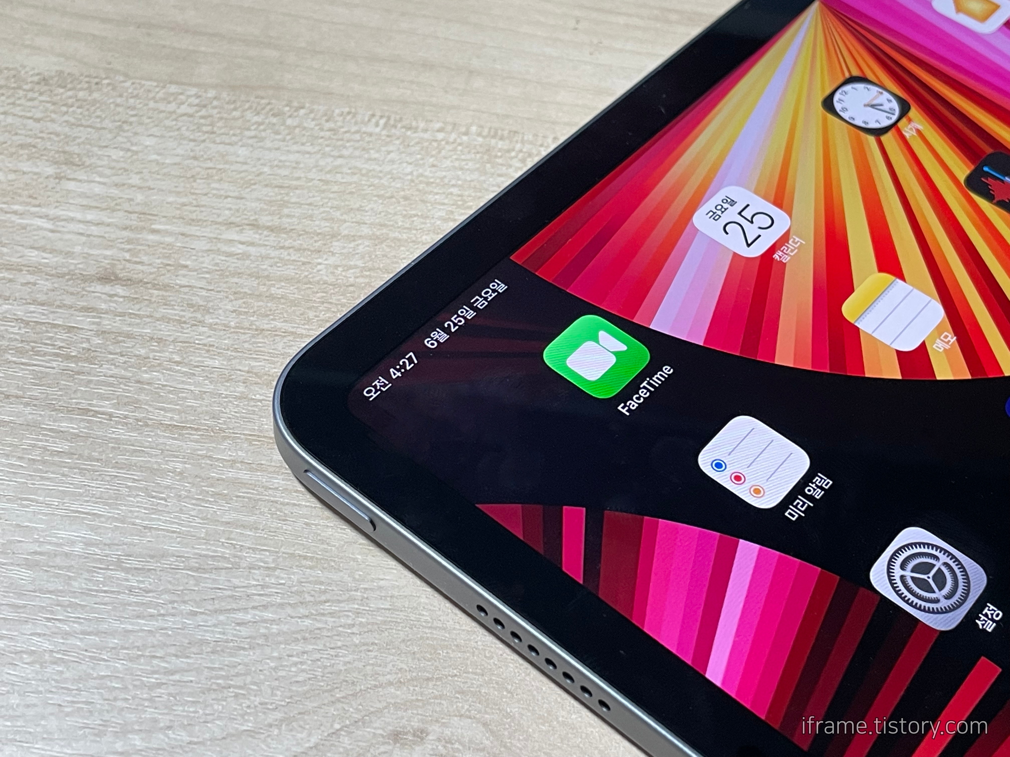 디스플레이는 특이한 점이 없어서 따로 설명을 안 했는데, ProMotion(120Hz 디스플레이)을 지원하며 Retina 디스플레이가 탑재되어 있습니다. 사실 12.9형 모델에는 Liquid Retina XDR 디스플레이 및 Mini LED가 탑재되어 있는 패널을 사용하다 보니 이전 세대와의 뚜렷한 차이가 있는데 반해 11형은... 이전 세대인 2세대와의 차이가 거의 없는 게 특징입니다.