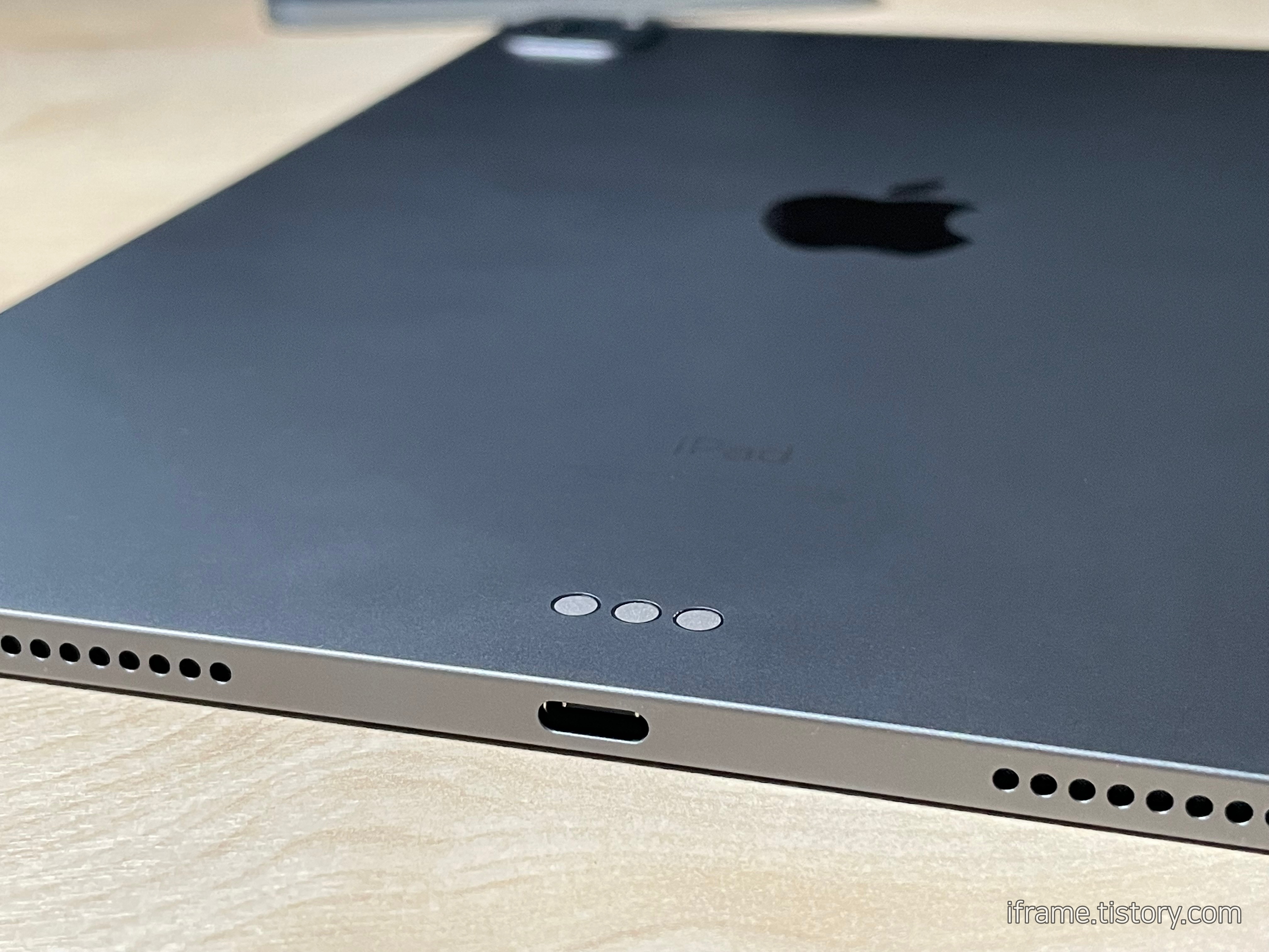 iPad Pro 11형(1세대~) 및 12.9형(3세대~)에는 USB-C를 입출력 포트로 사용하며 기존의 Lighting Port를 대체합니다. 덕분에 마진이 좋은 MFi 인증 라이트닝 케이블을 사용하거나 일부 전용 어댑터를 구매해서 사용하지 않아도 USB-C를 지원하는 액세서리를 사용할 수 있으며, 삼성전자의 갤럭시 시리즈의 케이블이나 충전기 또한 자유롭게 사용할 수 있을 만큼 호환성이 꽤나 좋아졌습니다. iPhone에도 적용되면 참 편리하겠지만 그럴 일은 아예 없겠죠.