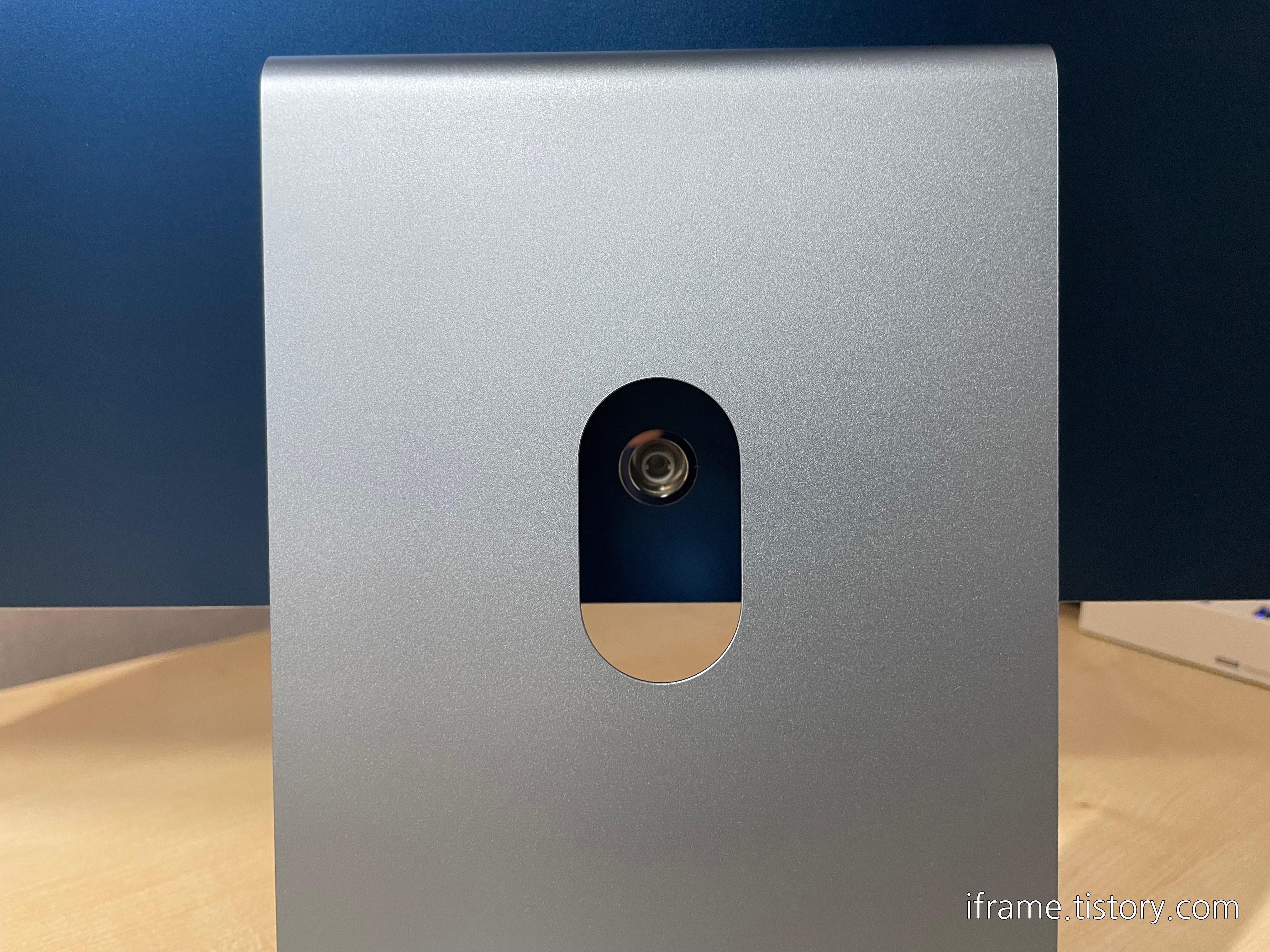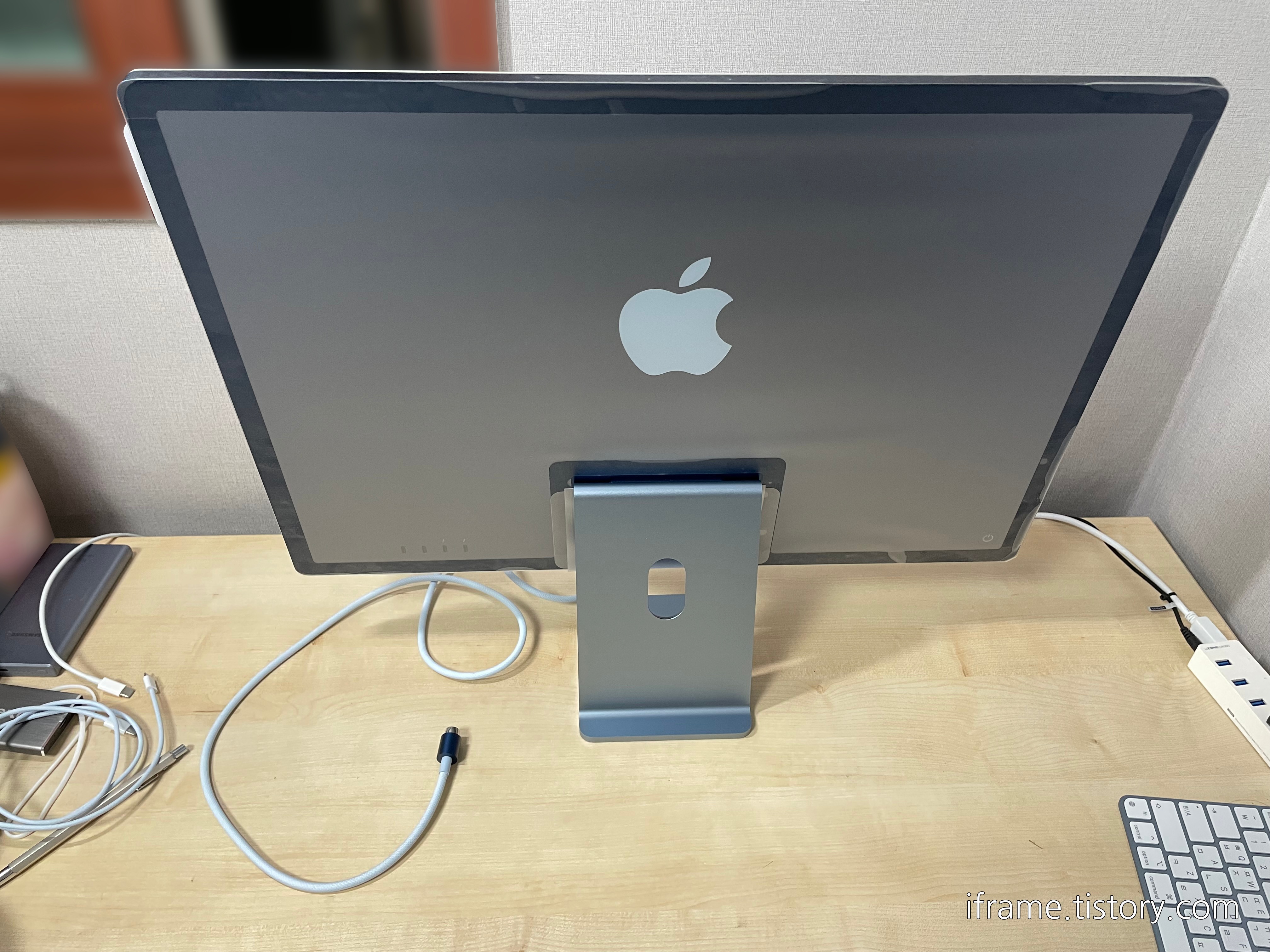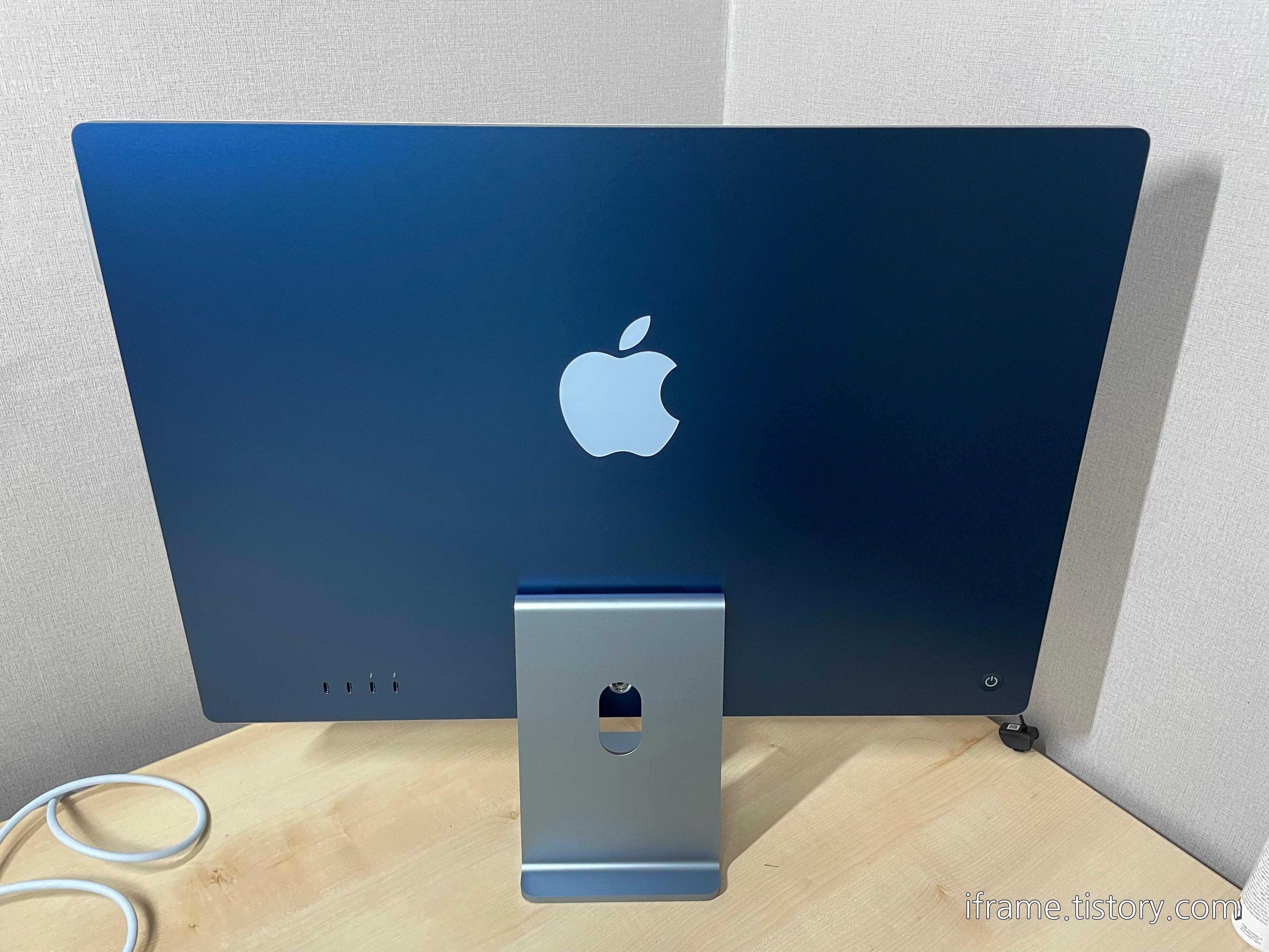 근데 가만 생각해보니 iMac을 벽 쪽에 두고 사용하다 보니(사진 촬영 후 책상 위치를 변경했습니다) 뒷면을 본 적은 케이블을 꽂을 때 외엔 거의 없었네요. 방 가운데나 거실 같은 데서 테이블 위에 올려두고 사용해야 볼 정도?? 네요.