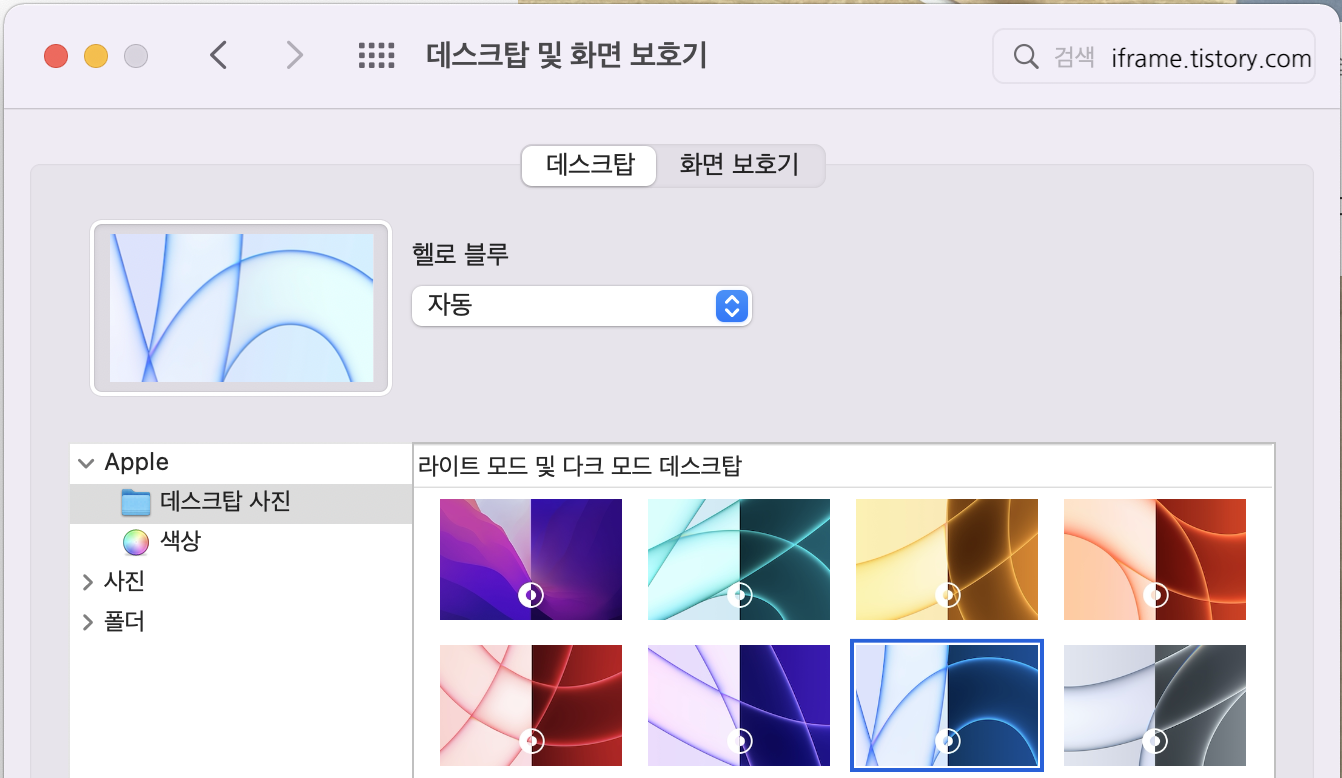 바로 이런 식으로 말이죠. 목록에서 첫 번째 사진의 경우 macOS 12 Monterey(베타 버전)을 설치했을 때만 뜨며, 그 외에는 Big Sur의 기본 바탕화면이 뜹니다(2021/07 기준).