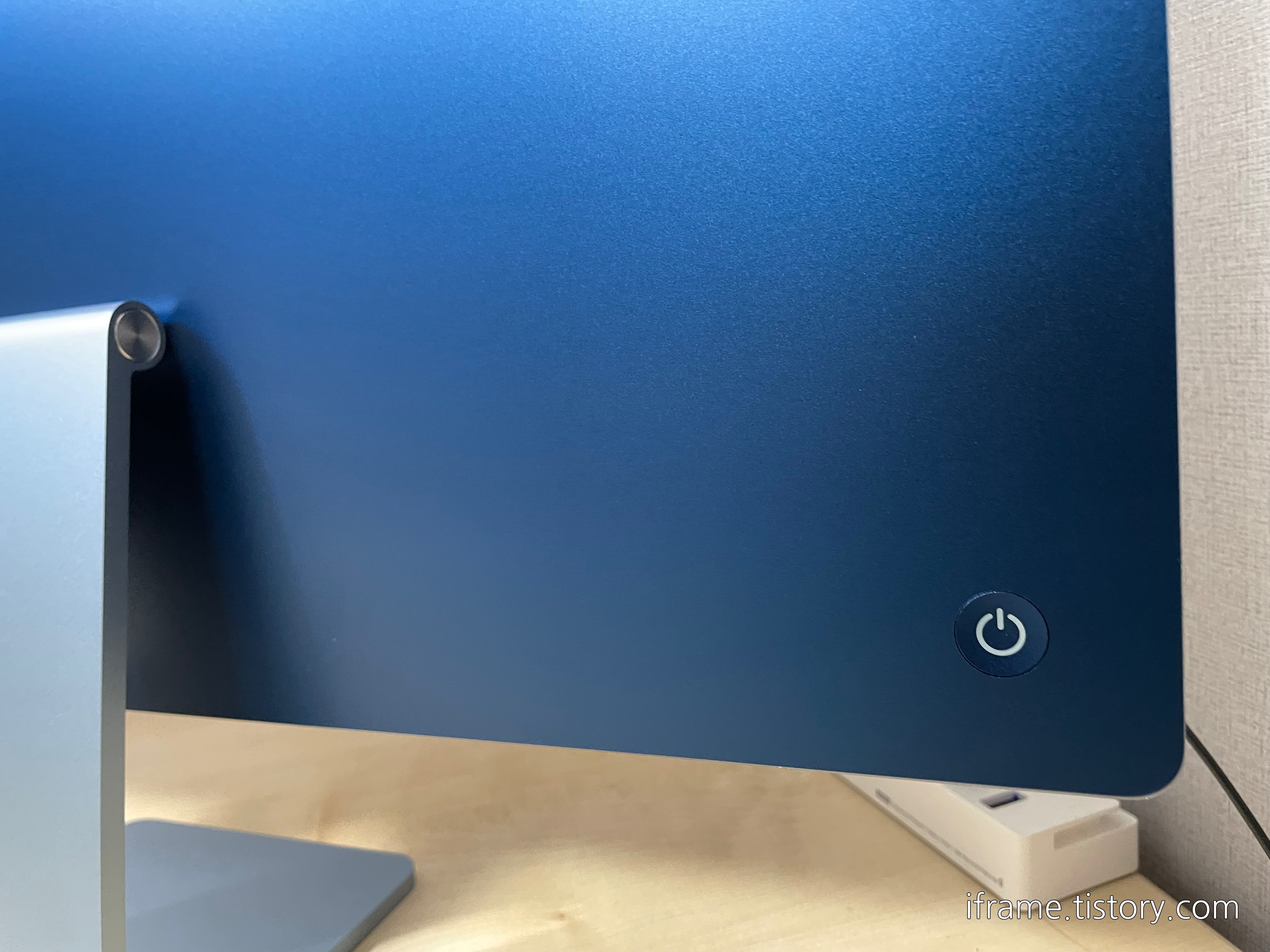 다른 설명이 필요하지 않습니다. 깔끔하고 이쁘게 뽑힌 색상이라는 점이 새로운 iMac을 설명하기에 충분하다는 생각이 듭니다. 여태껏 화면 하단에 Apple 로고가 박혀있는 그러한 iMac을 보셨다면 좀 새로운 느낌을 받지 않으실까 싶습니다. 물론 하단의 베젤도 줄여버리면 좋겠다는 분도 많지만, M1 칩이 탑재된 iMac의 로직보드를 비롯하여 여러 부품이 자리 잡았기 때문에 그건 아직은 어렵지 않나 싶네요.