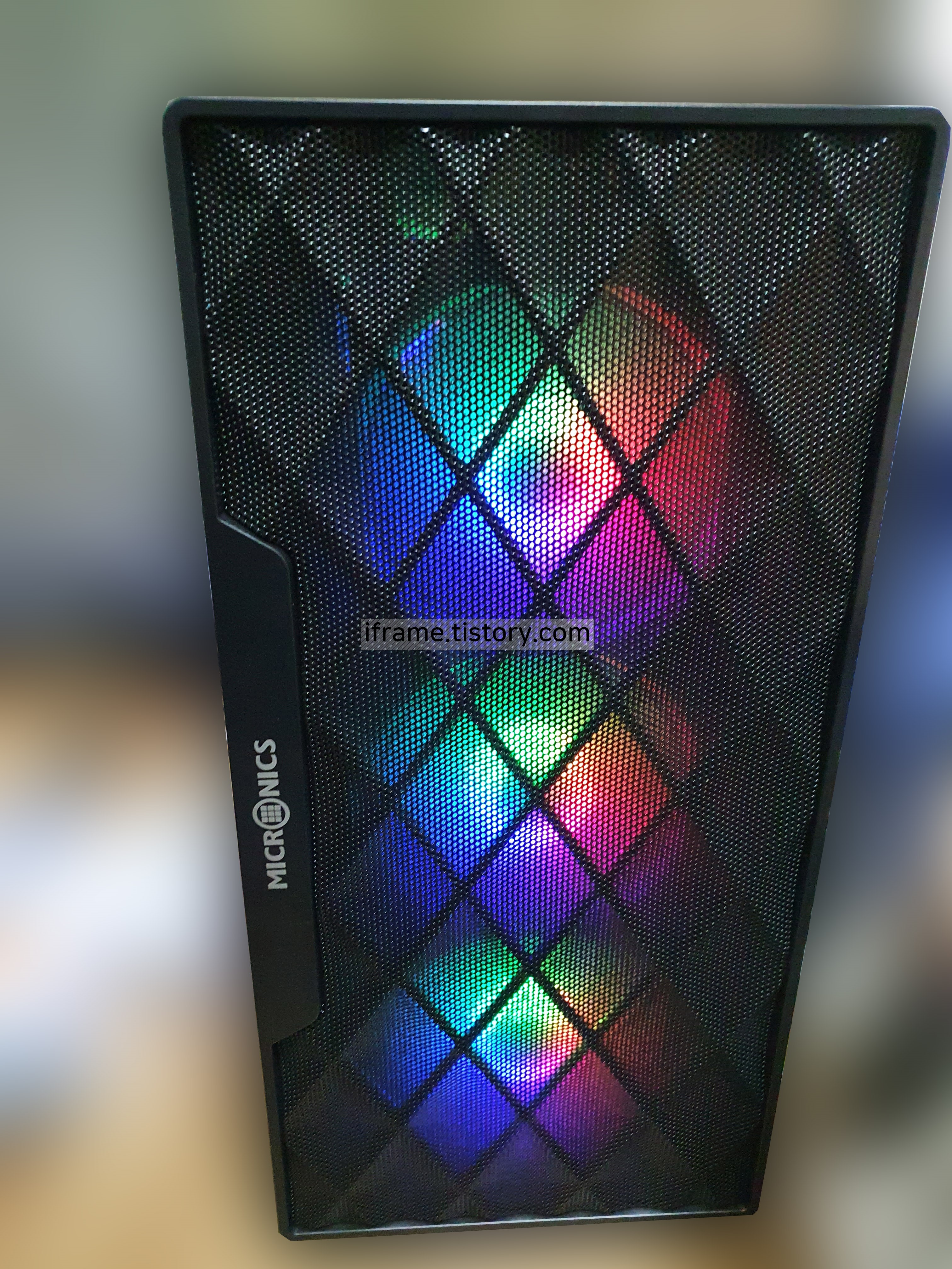 장점- 35,000원 정도의 저렴한 가격. LED가 탑재된 쿨러 장착, 선 정리를 할 수 있도록 적당히 마련된 공간, 전면의 매시망/상단의 망의 분리가 가능한 점입니다.