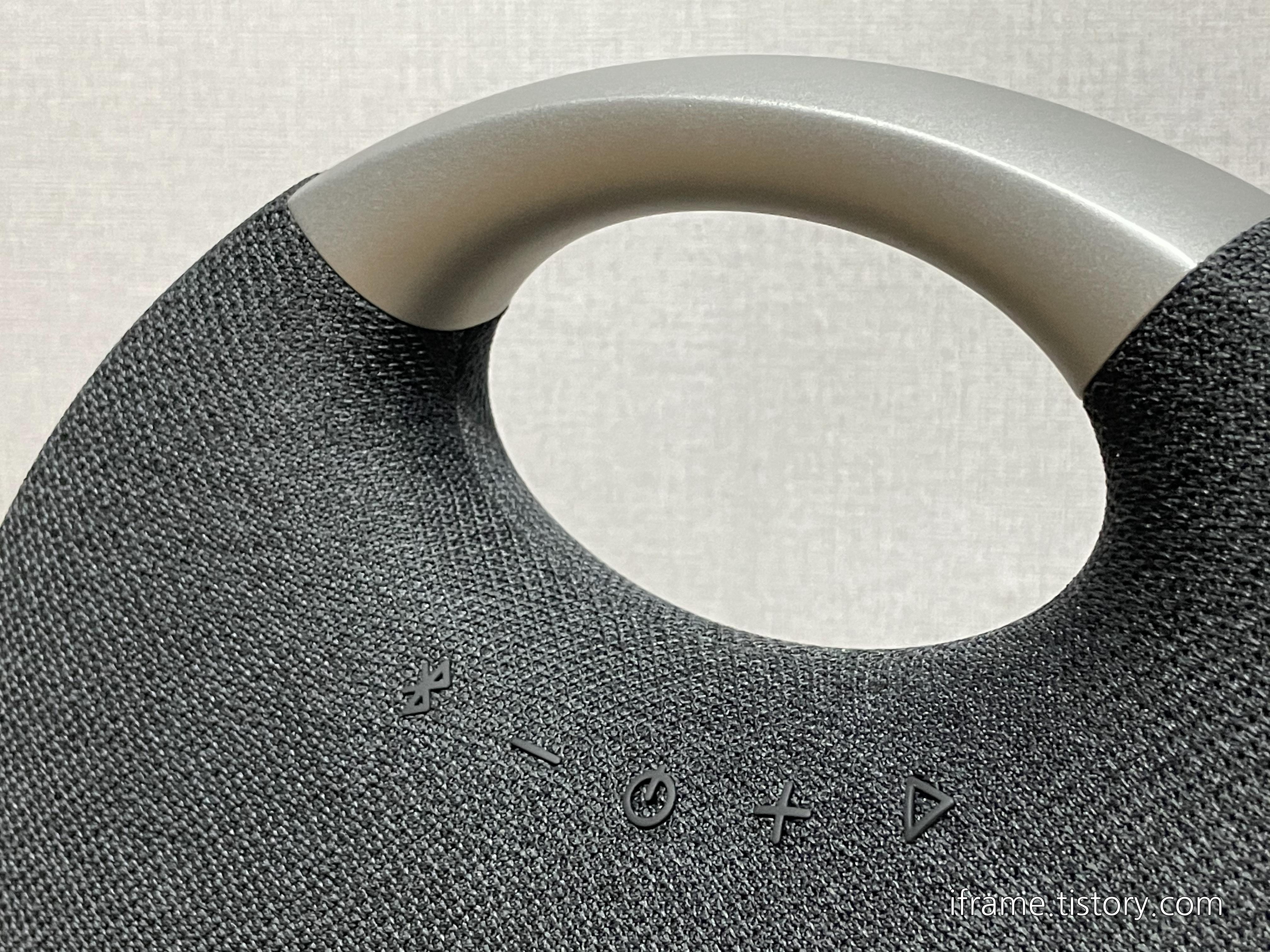 디자인은 깔끔합니다. 스피커는 패브릭 소재를 적용하여 고급스러운 느낌도 들면서, 손잡이에는 알루미늄이 적용되어 있다 보니 단단한 느낌도 주는 게 특징입니다.