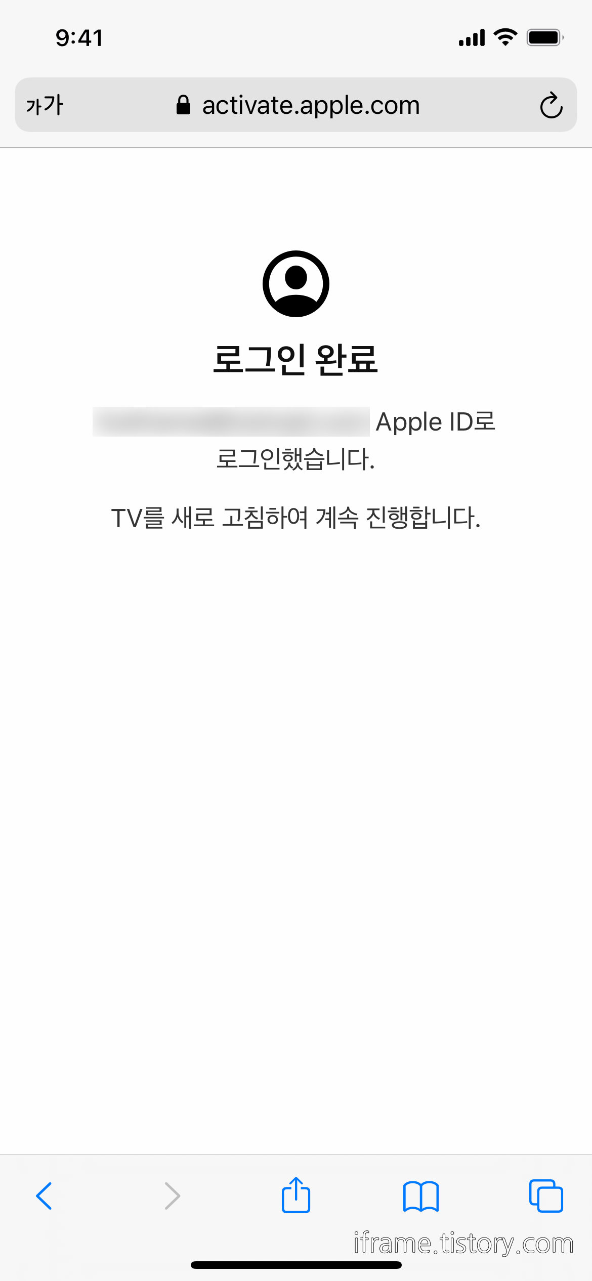 ※ 로그인 화면은 현재(2021/11)와 일부 상이하며, 화면상에 뜨는 QR코드를 스캔하여 로그인하거나 TV에서 직접 로그인을 하면 됩니다. 웬만하면 iPhone이나 iPad에서 QR코드를 스캔하여 로그인하는 방법이 조금 편리합니다.