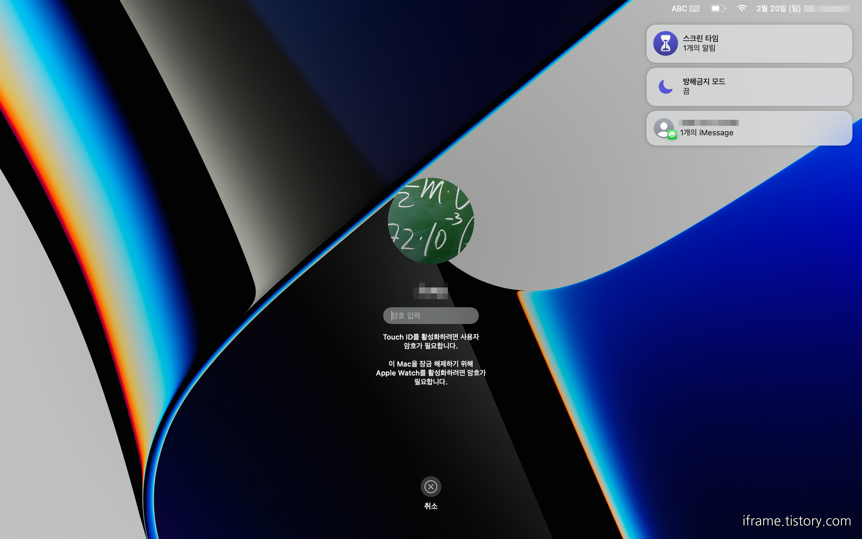 - 맥도 마찬가지로 잠금 해제가 되어 있어야 합니다. 맥을 껐다가 켜면 아래와 같이 암호가 필요하다고 뜨는데 입력하여 로그인을 해줘야 이후 작동합니다.
