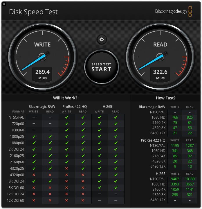 USB 허브니까 USB 장치를 꽂아봤습니다. 작동 속도는 322/269(MB/s) 정도로 나옵니다. 사용 환경에 따라 다르지만 외장하드/SSD를 꽂고 사용해도 별 무리는 없습니다.