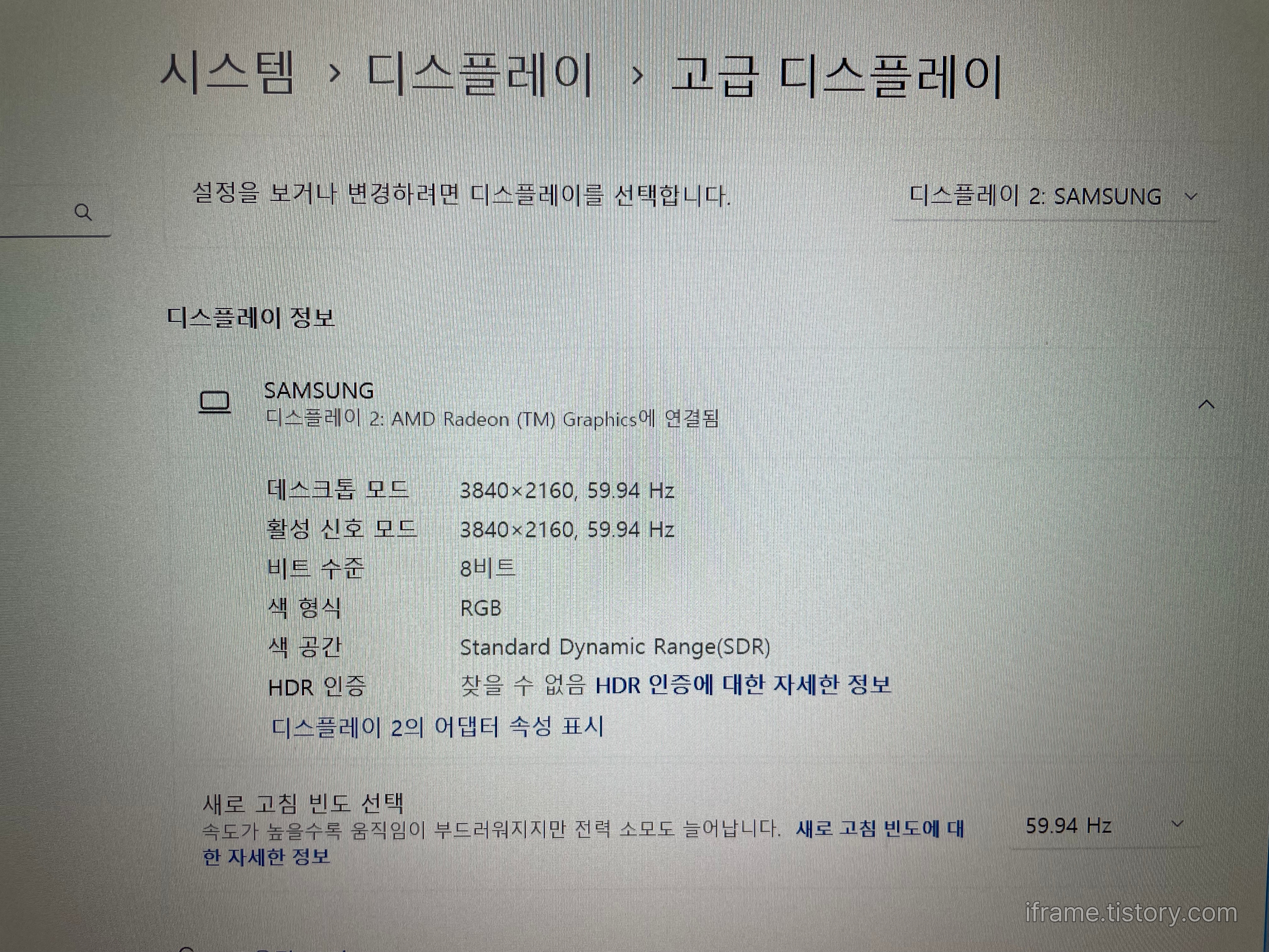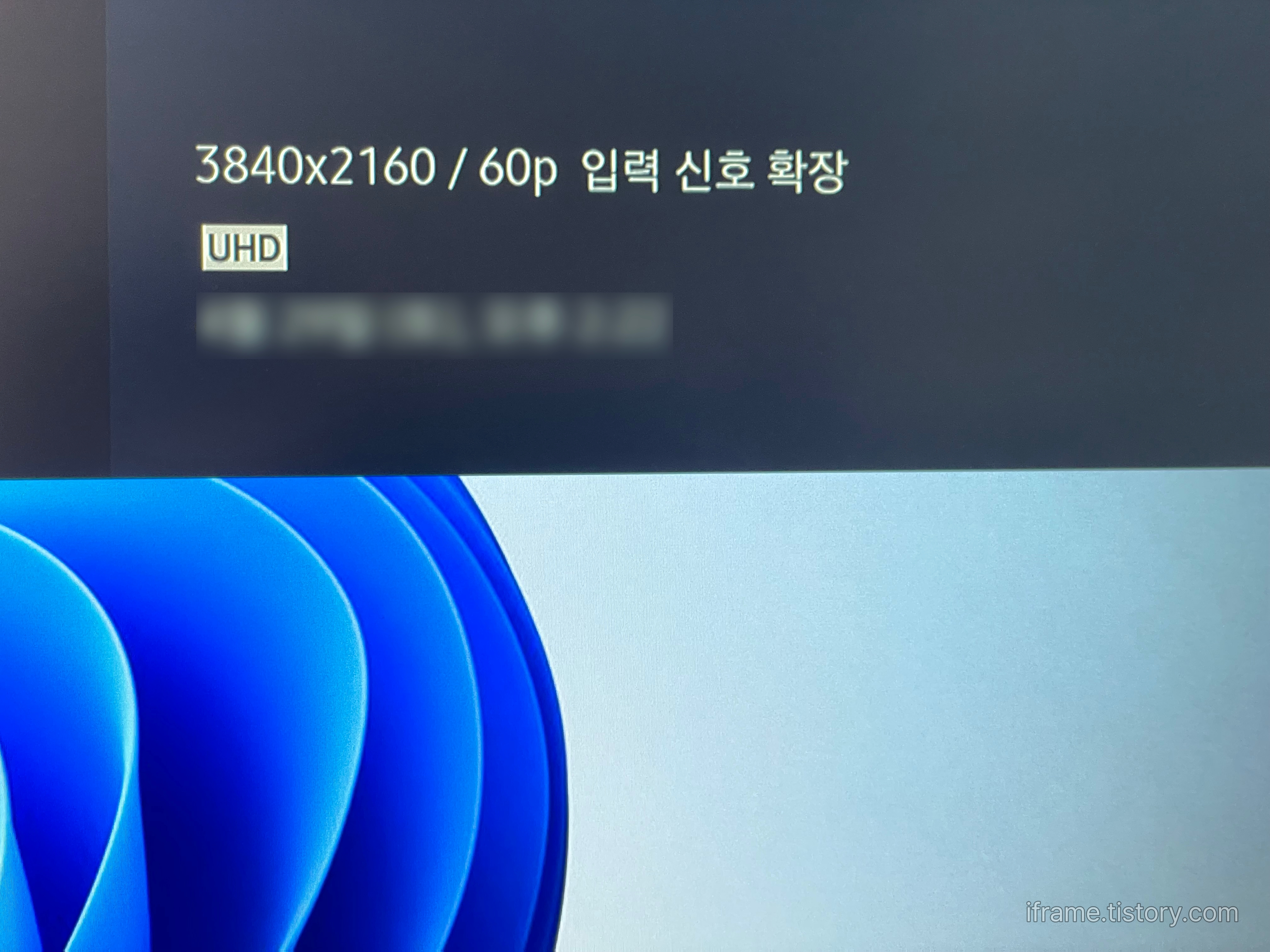 연결이 되면 3840*2160의 해상도가 정상적으로 뜨며, 60 프레임으로 작동되는 모습을 확인하실 수 있습니다. 저가의 어댑터는 4K 30p까지 지원되는데 단순 프레젠테이션용으로 사용하면 몰라도 게임이나 영상을 시청한다면 꽤나 차이가 나기에 구매 전 확인해 보세요.
