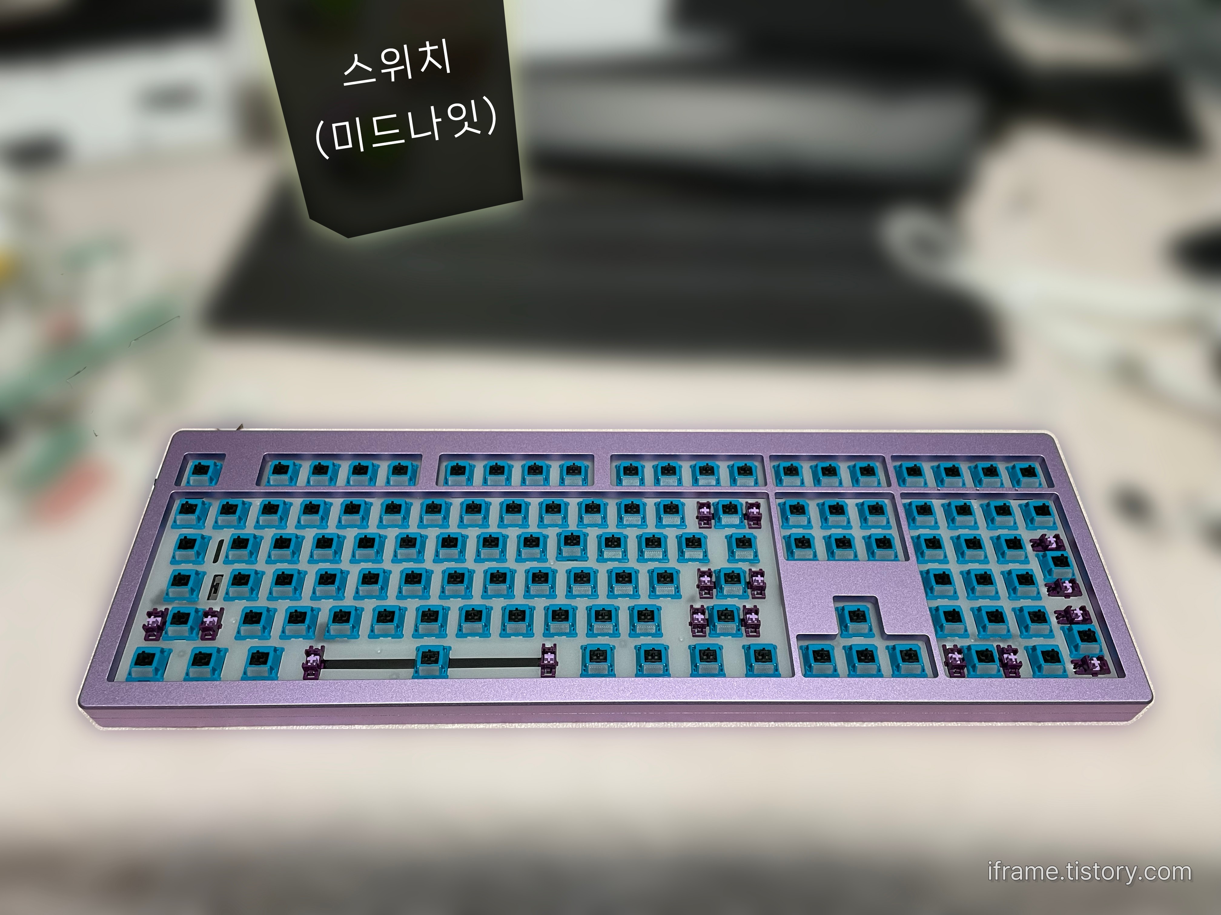 만약 사무실에서 사용할 계획이었다면 오테뮤 피치/라임 같은 저소음 스위치를 사용했을 것 같습니다. 근데 제가 일하는 사무실은 그렇게 조용하진 않아서 그냥 아무거나 써도 상관없긴 하지만 그게 아니라면 유의해야겠죠.