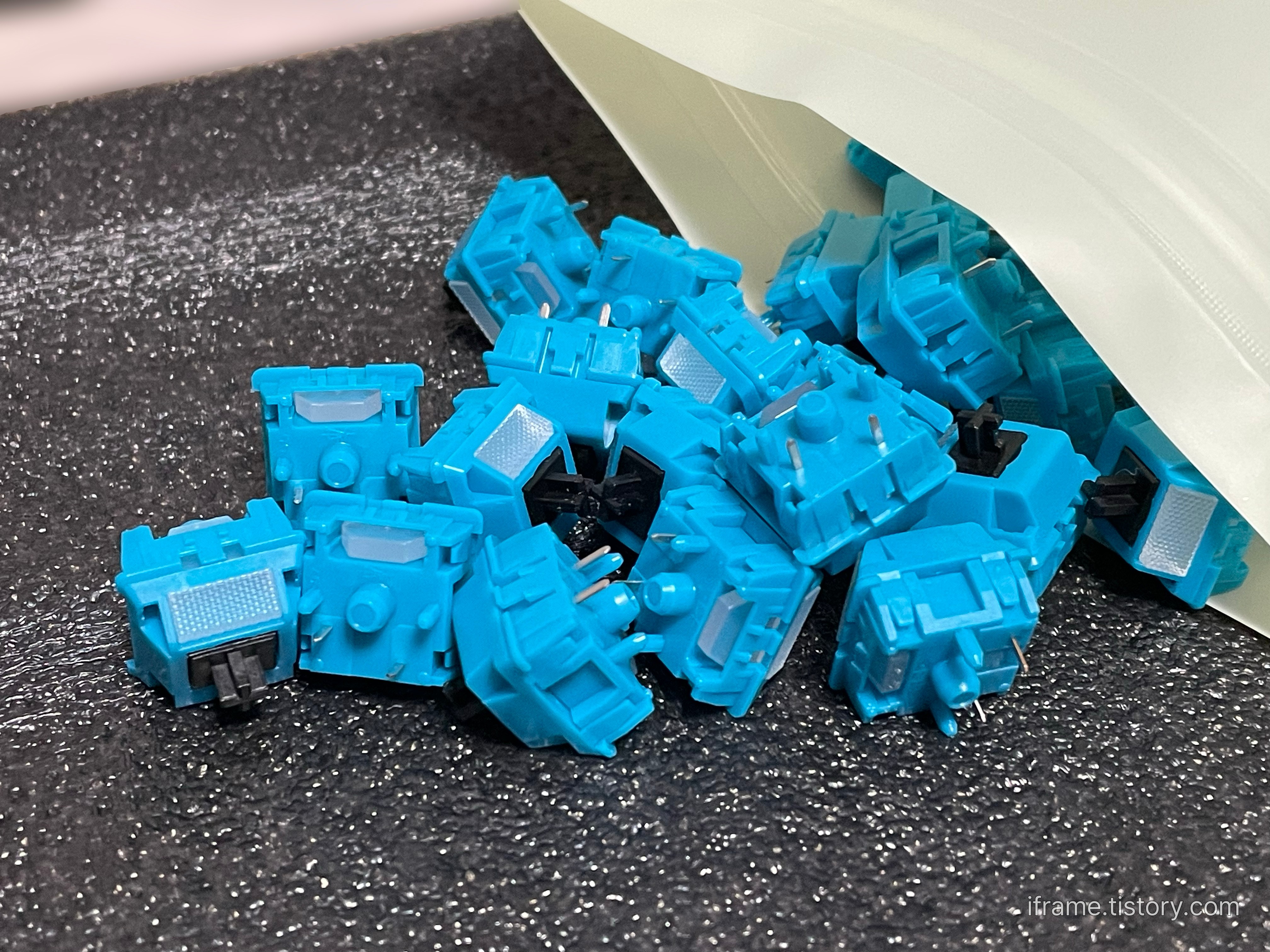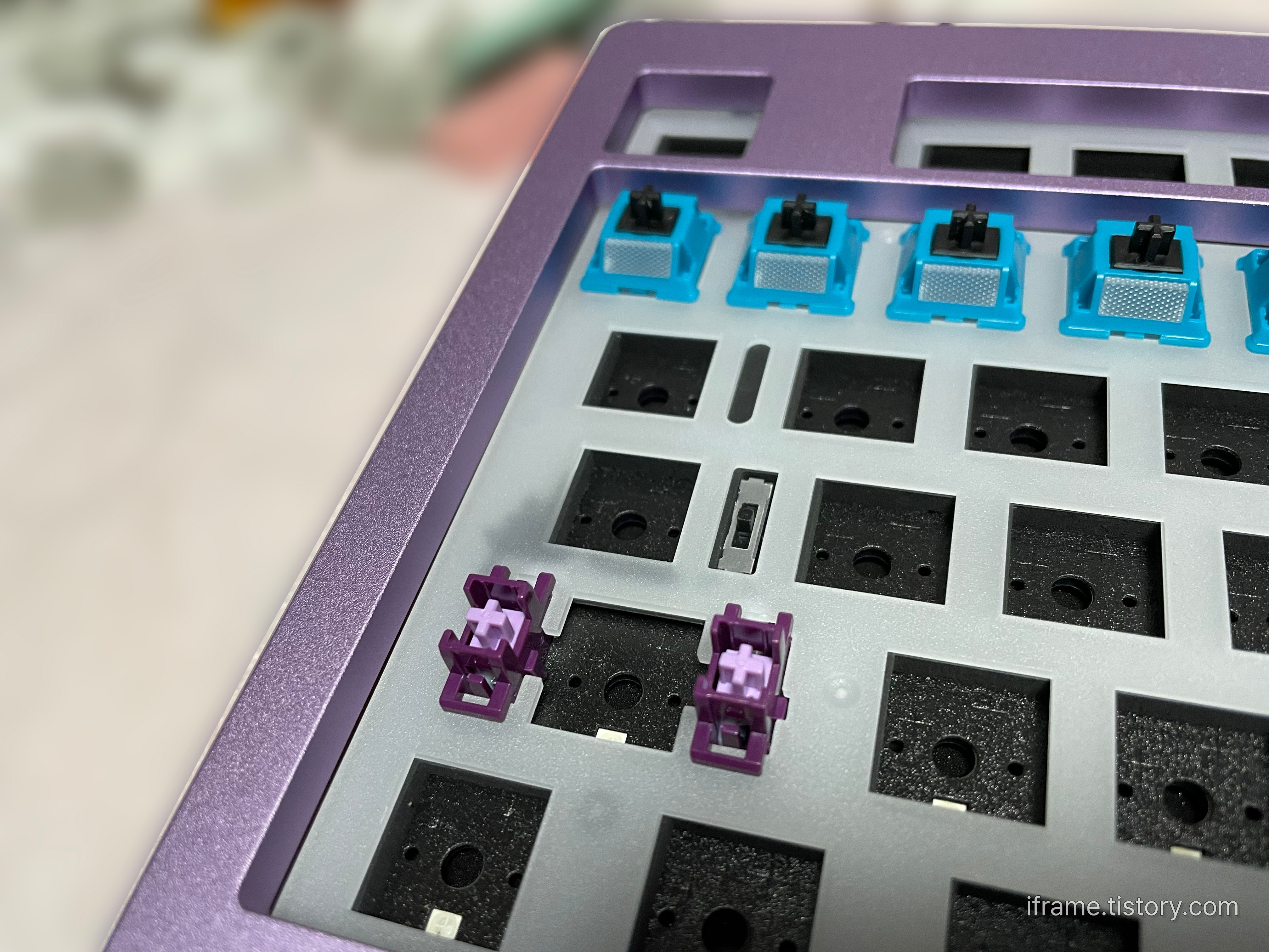 하우징이나 기판, 스테빌라이저, 배터리 등 대부분의 부품은 조립이 되어 있고, 여기에 스위치와 키캡을 끼워서 사용하는 형태입니다. 반은 조립되어 있다고 하는데 어떻게보면 거의 조립되어 있는 형태이긴 합니다.
