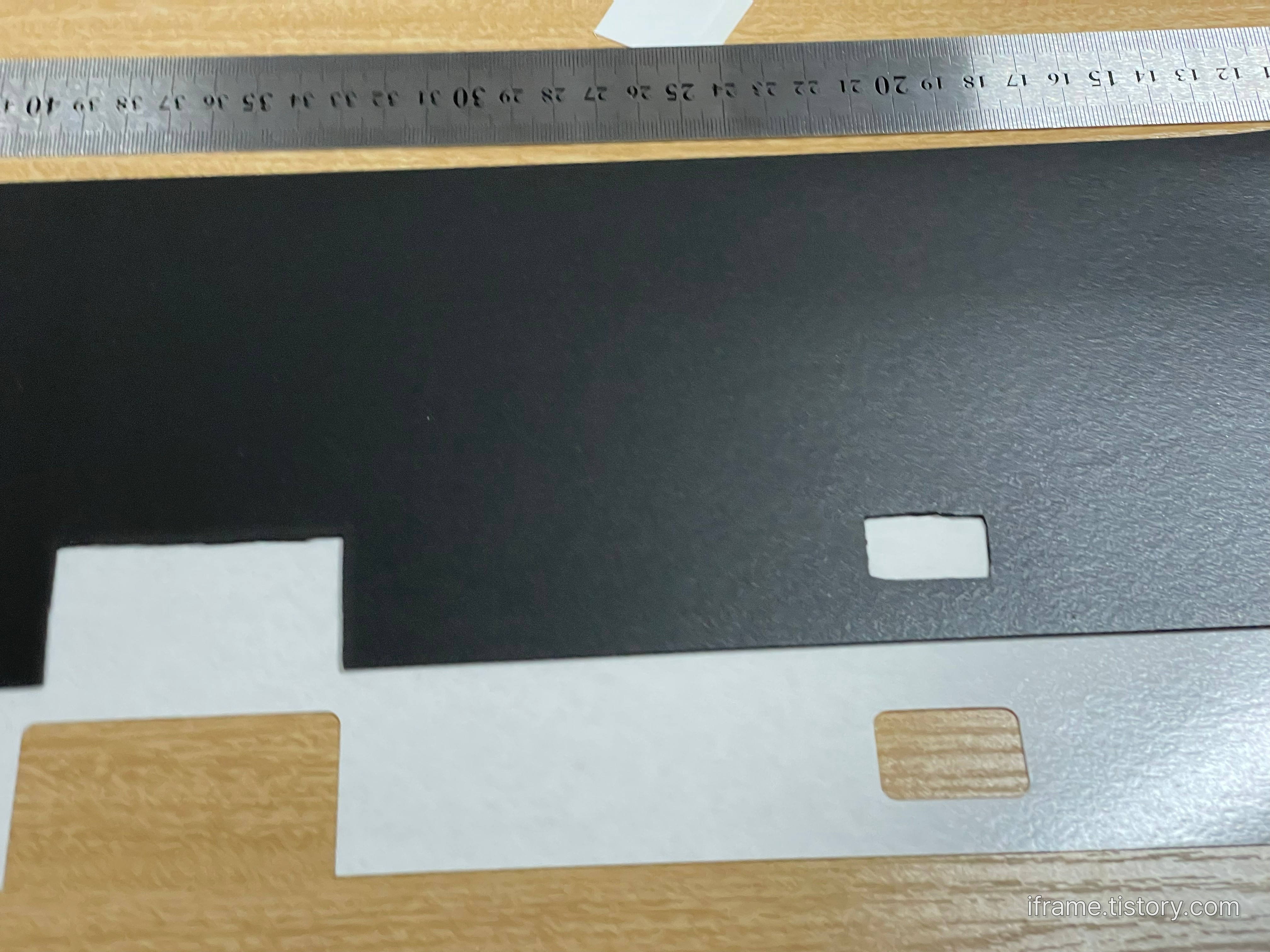 별도 구매한 흡음재(PORON 1.5mm)와 필름을 적절히 자른 다음, 필름은 키보드 내부에 붙이고 흡음재는 기판과 키보드 사이에 두었습니다.