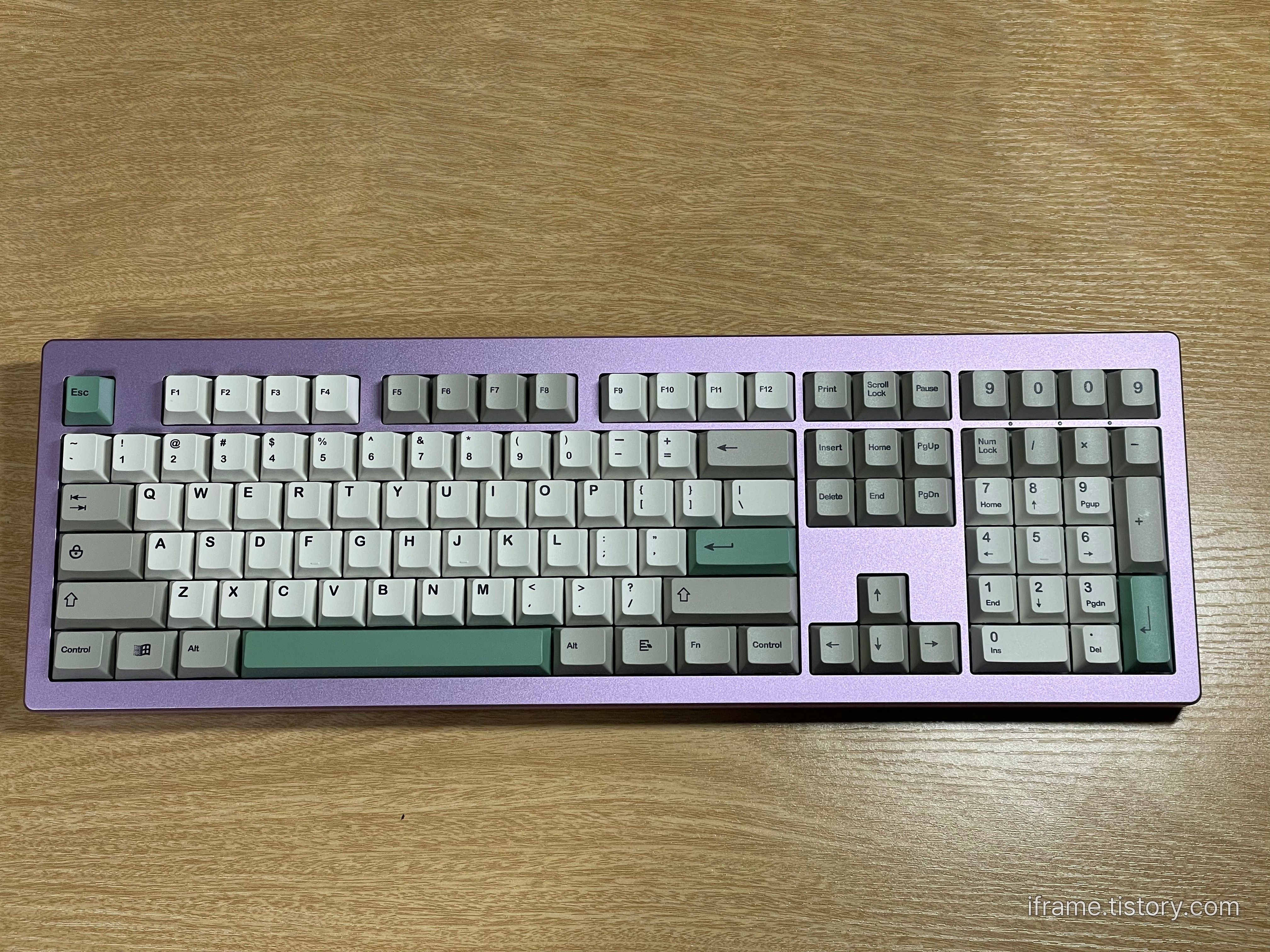 풀배열 키보드는 멤브레인 키보드에서만 썼던 것 같은데 기계식으로 사는 건 처음입니다. 텐키 리스나 75, 65 배열 등 다양한 형태의 키보드도 많지만, 키보드 하면 풀배열 키보드(104 키)가 생각나더라고요.