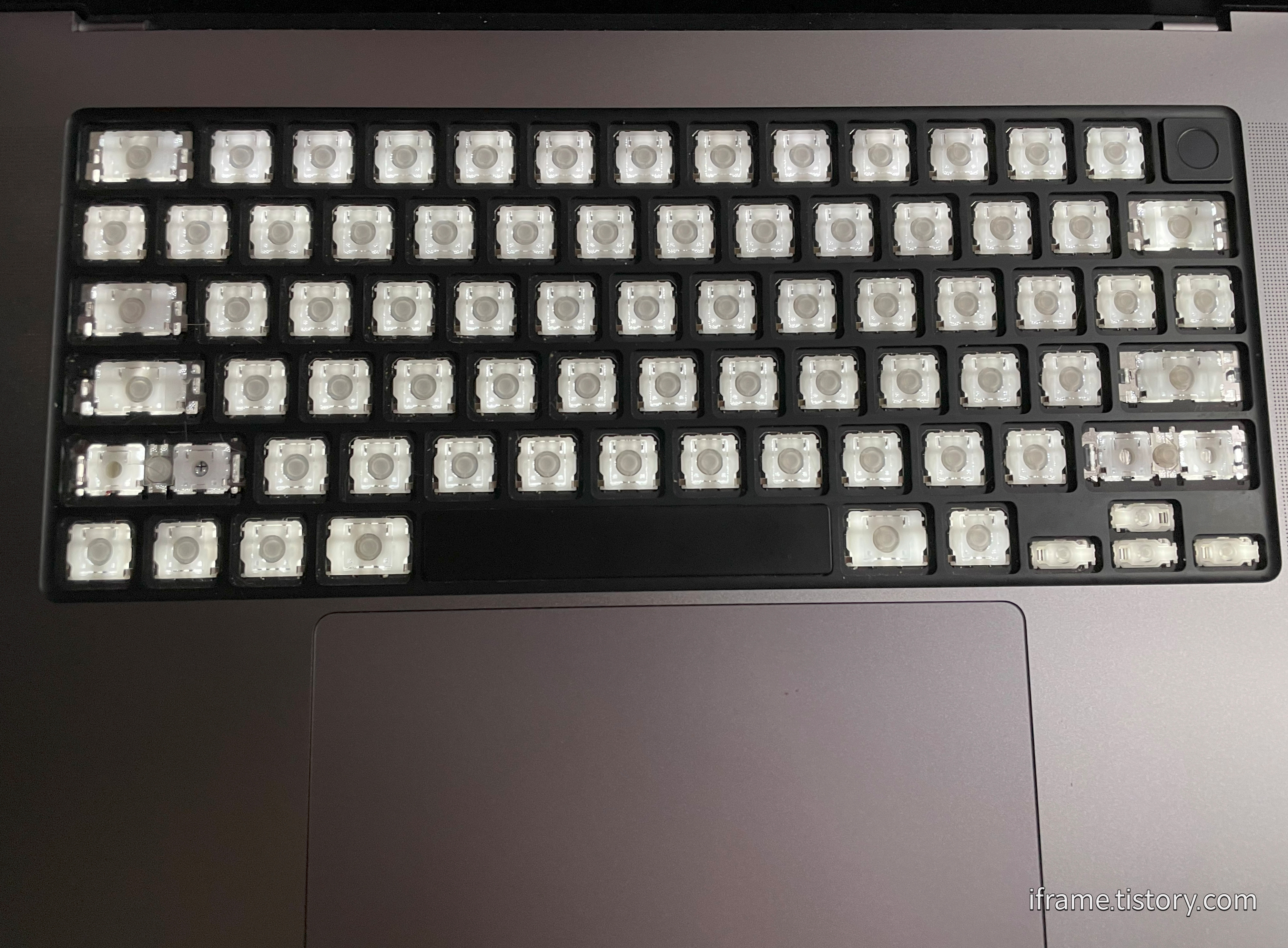 알파열도, 기능 키도 끼웠습니다. 이전에 했던 MacBook Air(M1, 2020)보단 쉬웠던 게, 기능 키가 방향키처럼 작은 키가 들어가는 게 아니라, 알파열의 키캡과 같은 사이즈라 작업하기 더 낫다고 생각합니다. 근데 웬만하면 하지 마세요 귀찮습니다